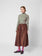 45% Polyamide, 55% Polyester Dark brown skirt. Designed with elasticated at the waist for a flexible fit, midi length, flared cut / evasé, non stretchy fabric and lightweight fabric. Fits true to size, take your normal size. Made in Spain.