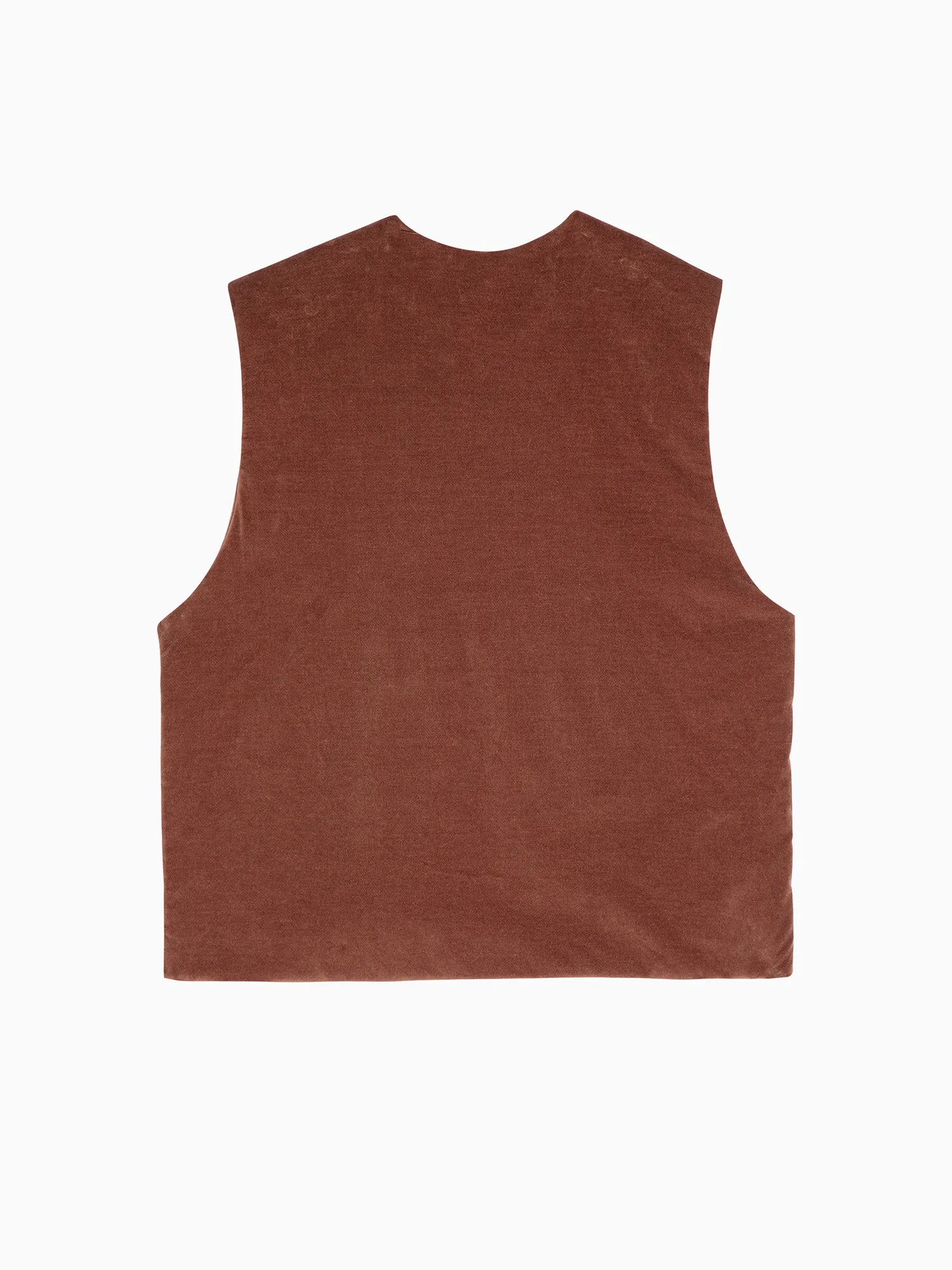 98% BCI Cotton, 2% Elastane Dark brown vest. Designed with slightly loose fit. Fits true to size, take your normal size. Made in Spain.