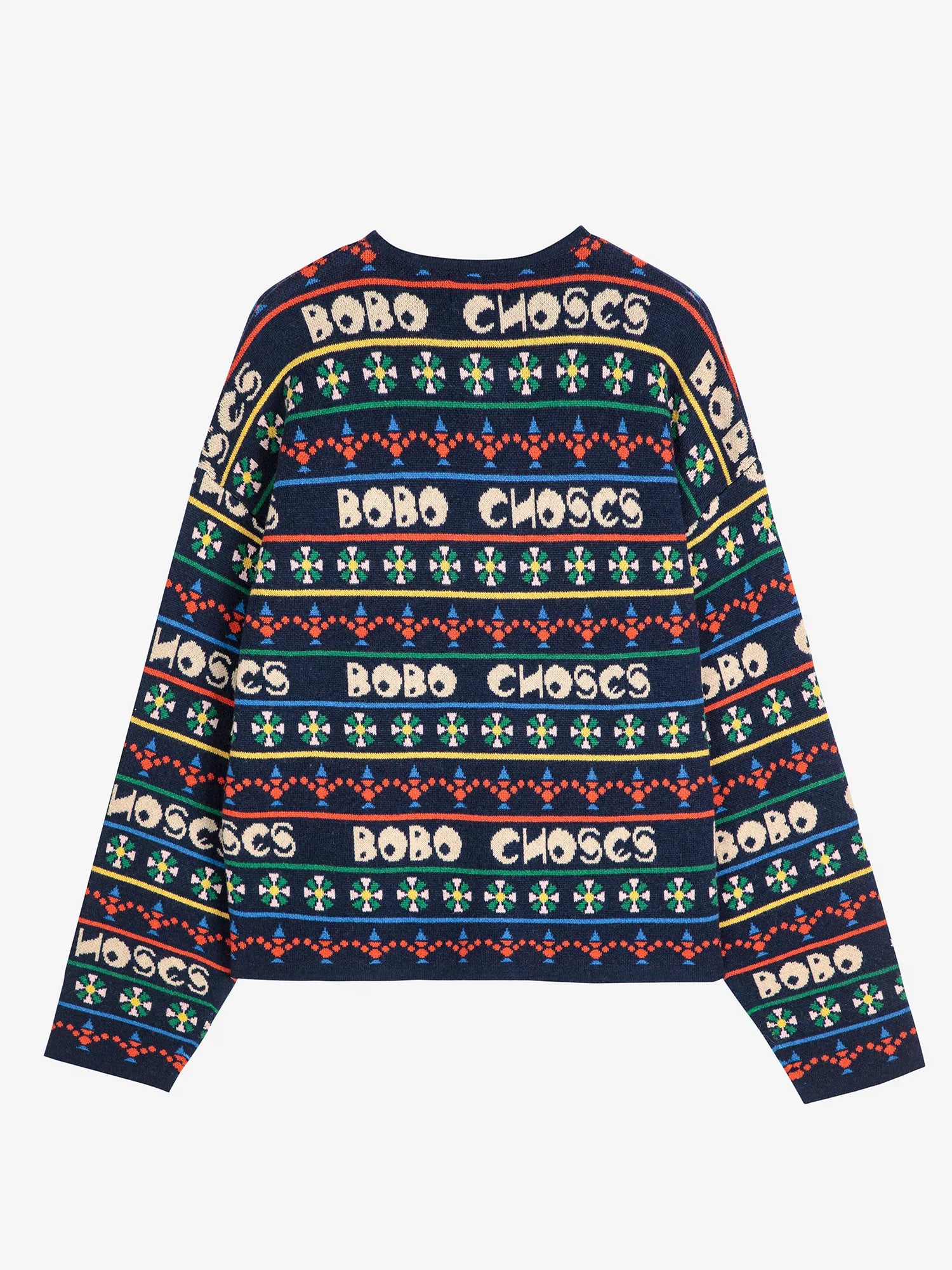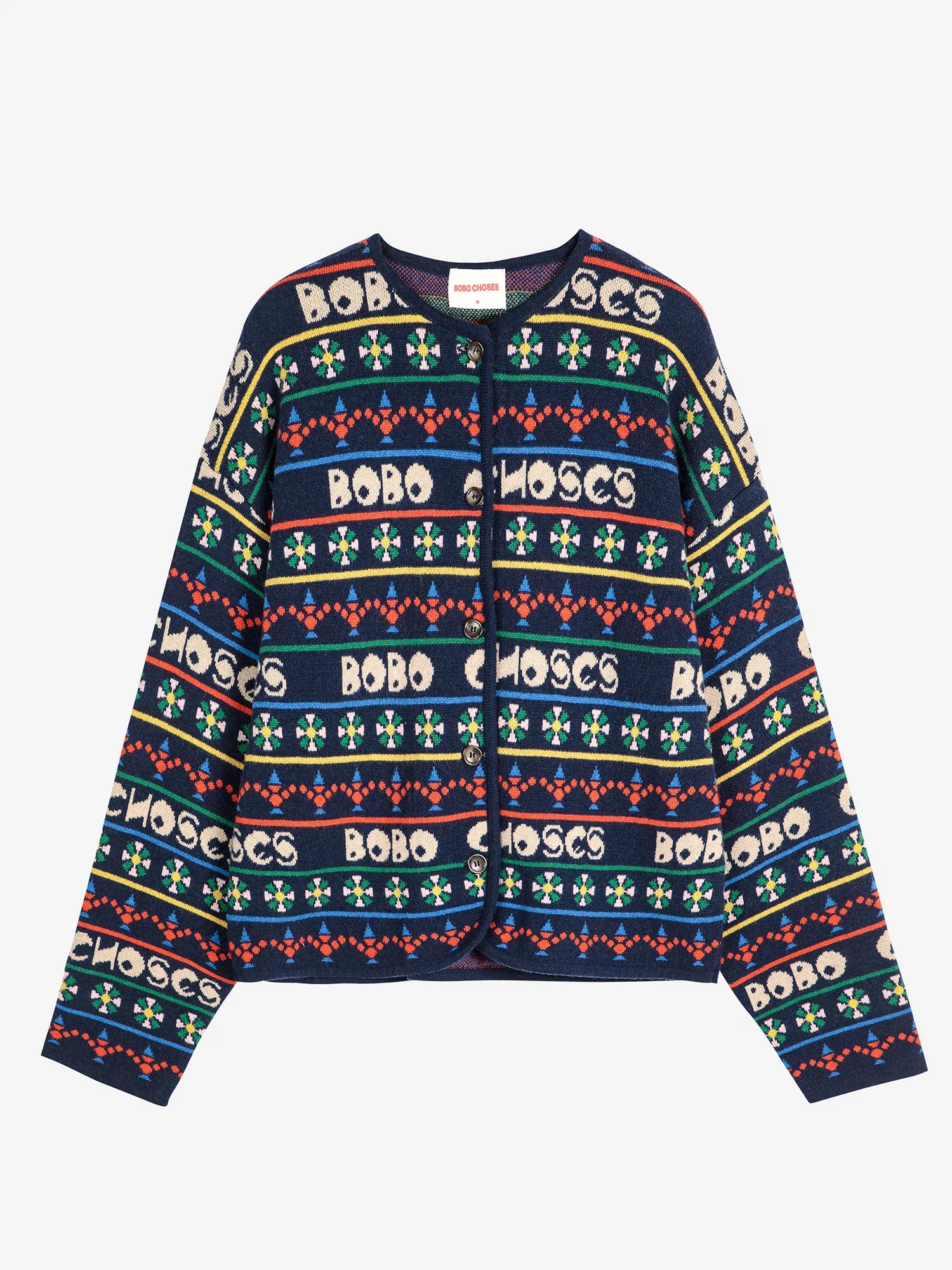 5% Recycled Cashmere, 35% Recycled Polyamide, 30% Recycled Viscose, 30% Recycled Wool Multicolor cardigan. Designed with designed for a relaxed fit and stretchy fabric. Fits true to size, take your normal size. Made in Spain.