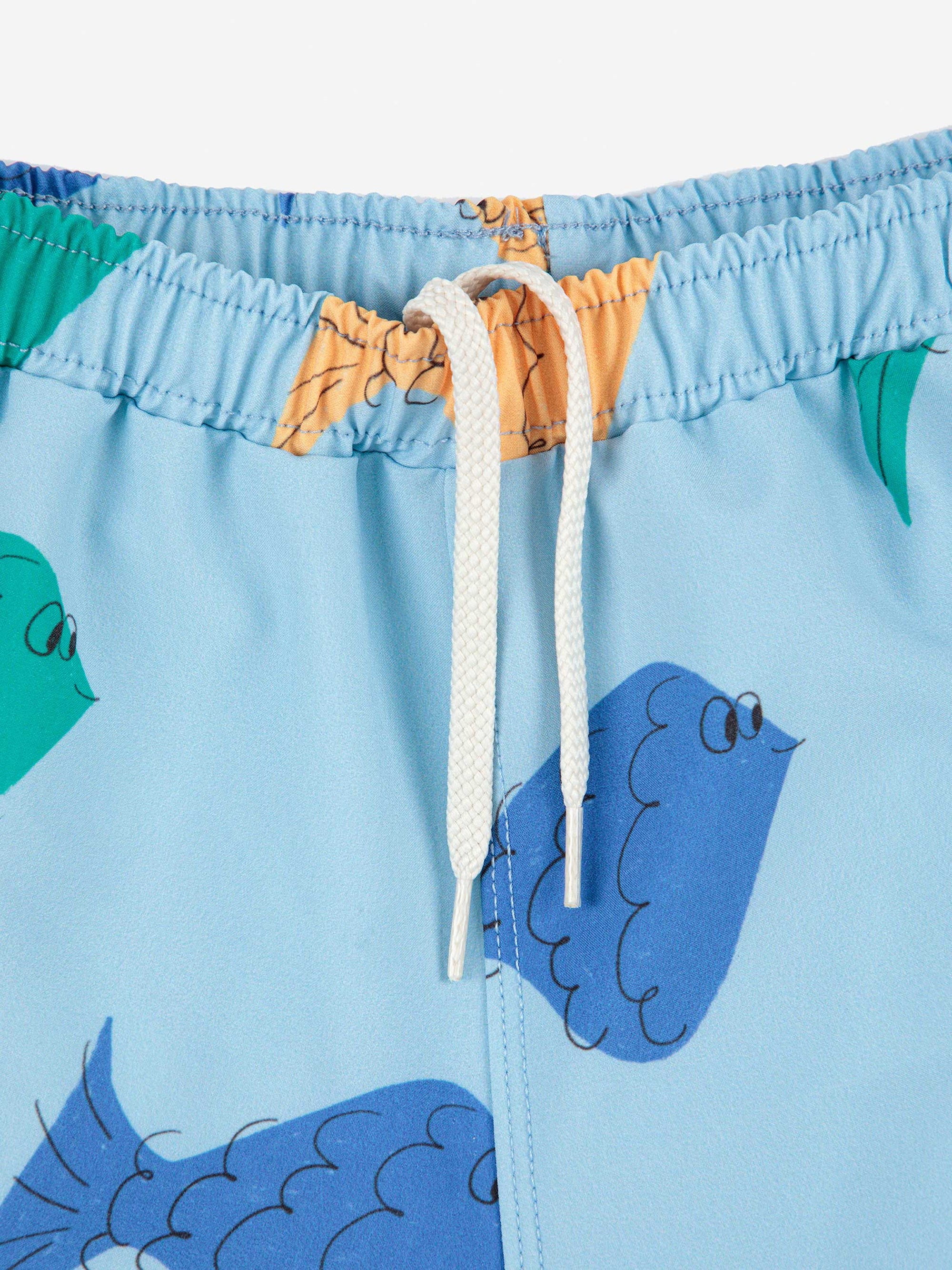 95% polyester 5% elastane light blue swimsuit. Designed with elasticated waistband. It has a relaxed fit. Made in Spain
