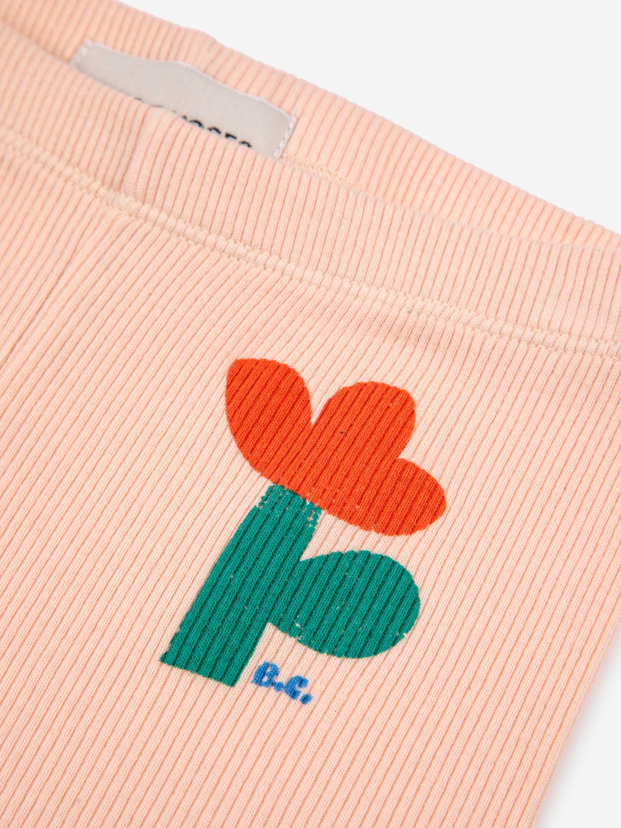 94% organic cotton 6% elastane light pink leggings. Designed with elasticated waistband. It has a slim fit. Made in Spain