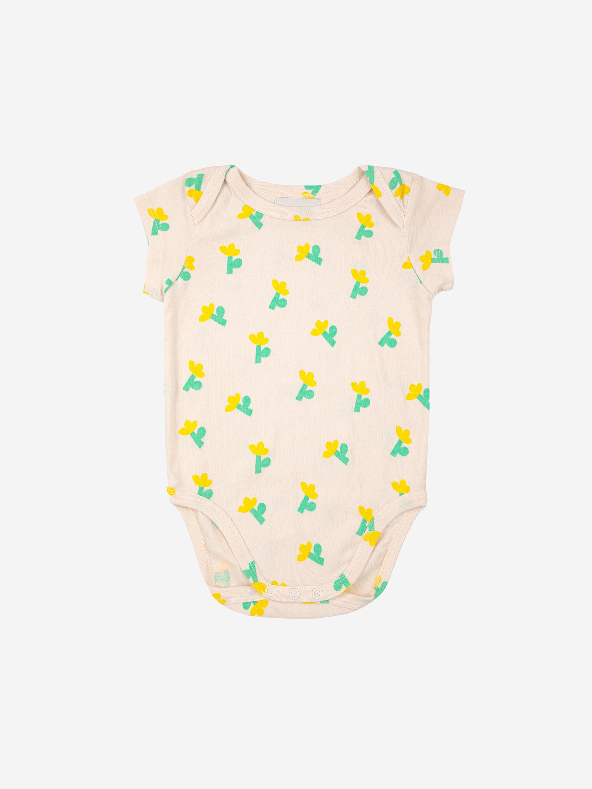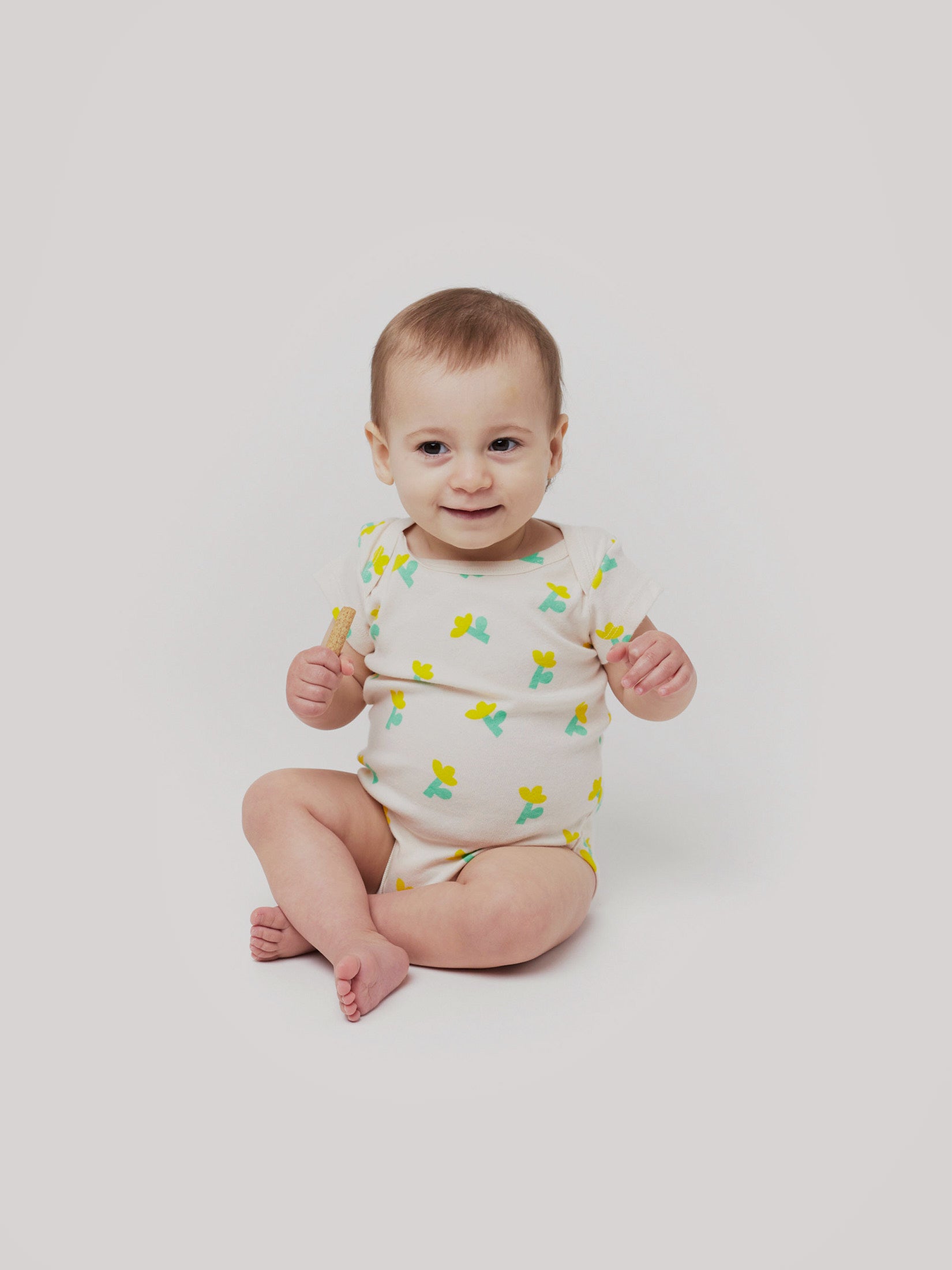 95% organic cotton 5% elastane offwhite short sleeve body. Designed with short sleeves, crotch snap fastening and envelope neck. It has a straight fit. Made in Spain