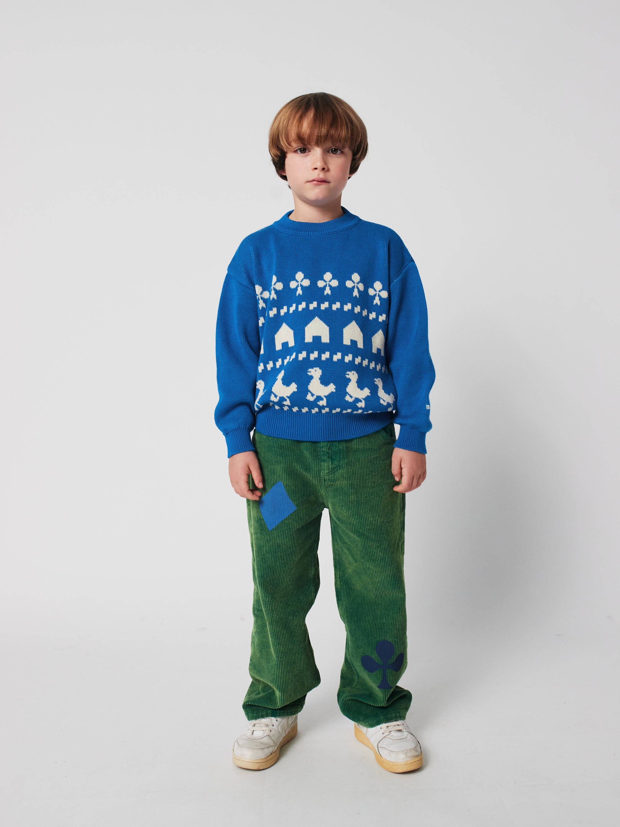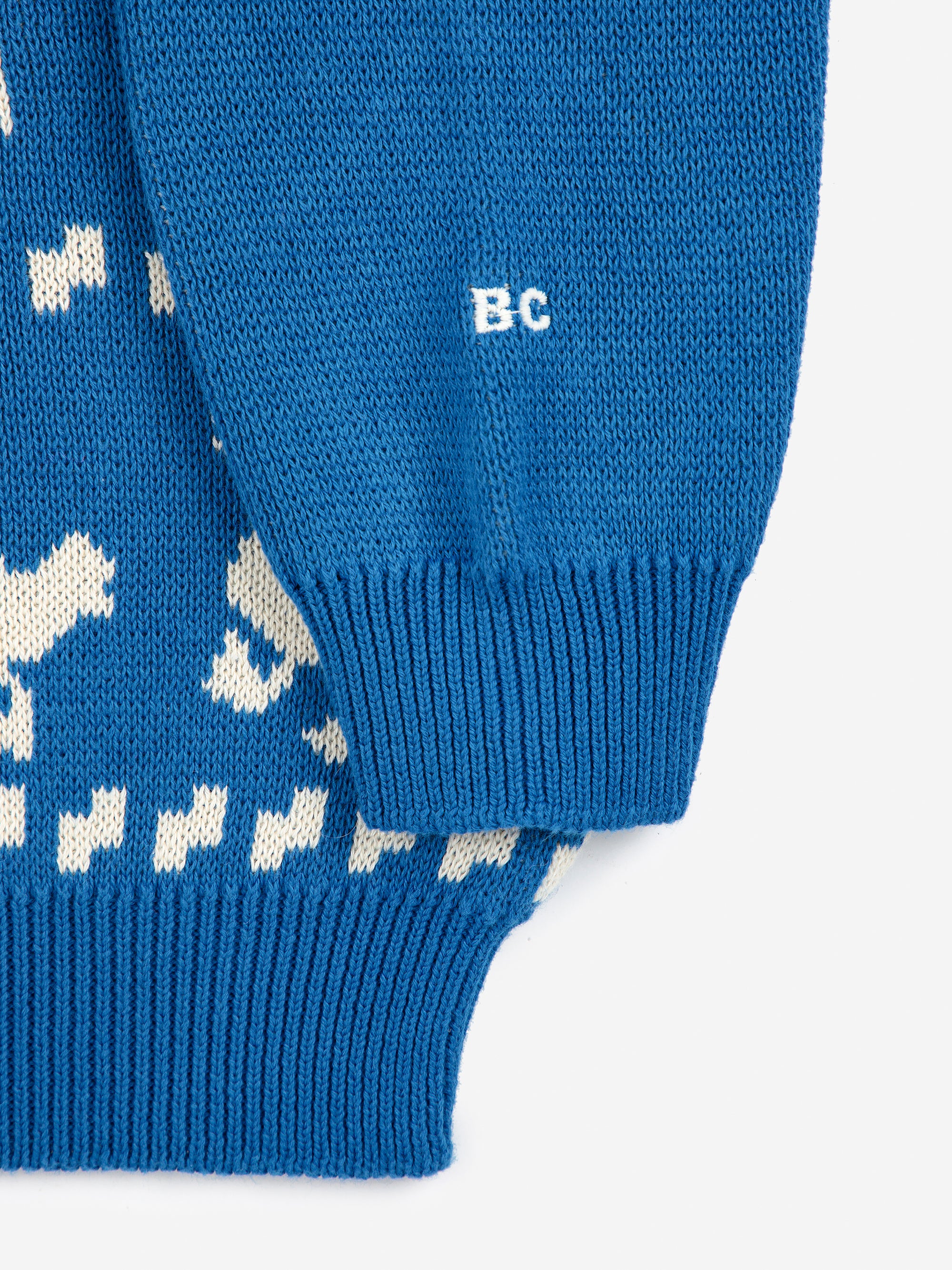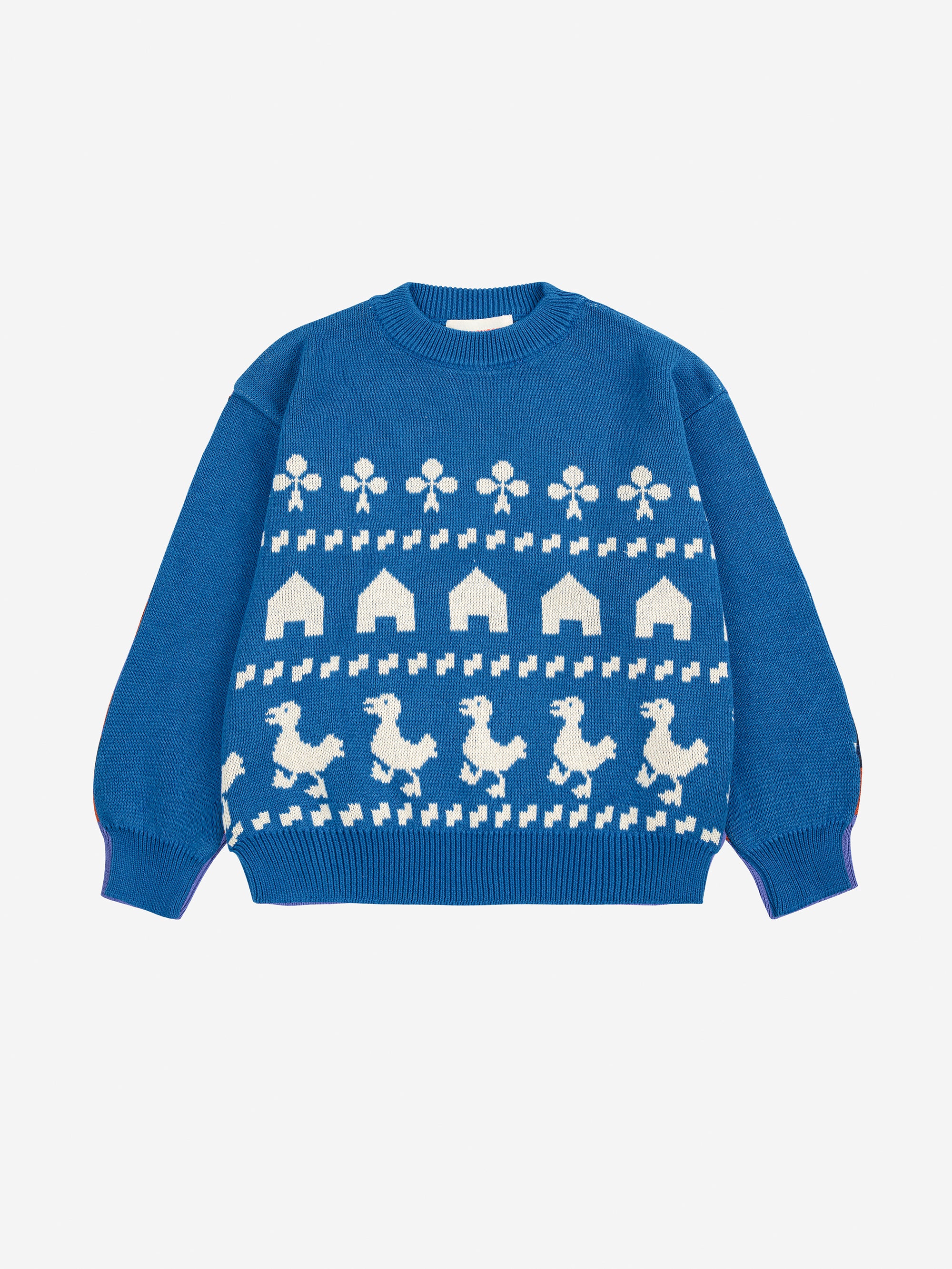 Blue jumper. Designed with crew neck, long sleeves, ribbed cuffs, embroidery, jacquard, loose fit and ribbed bottom. Made in Spain.