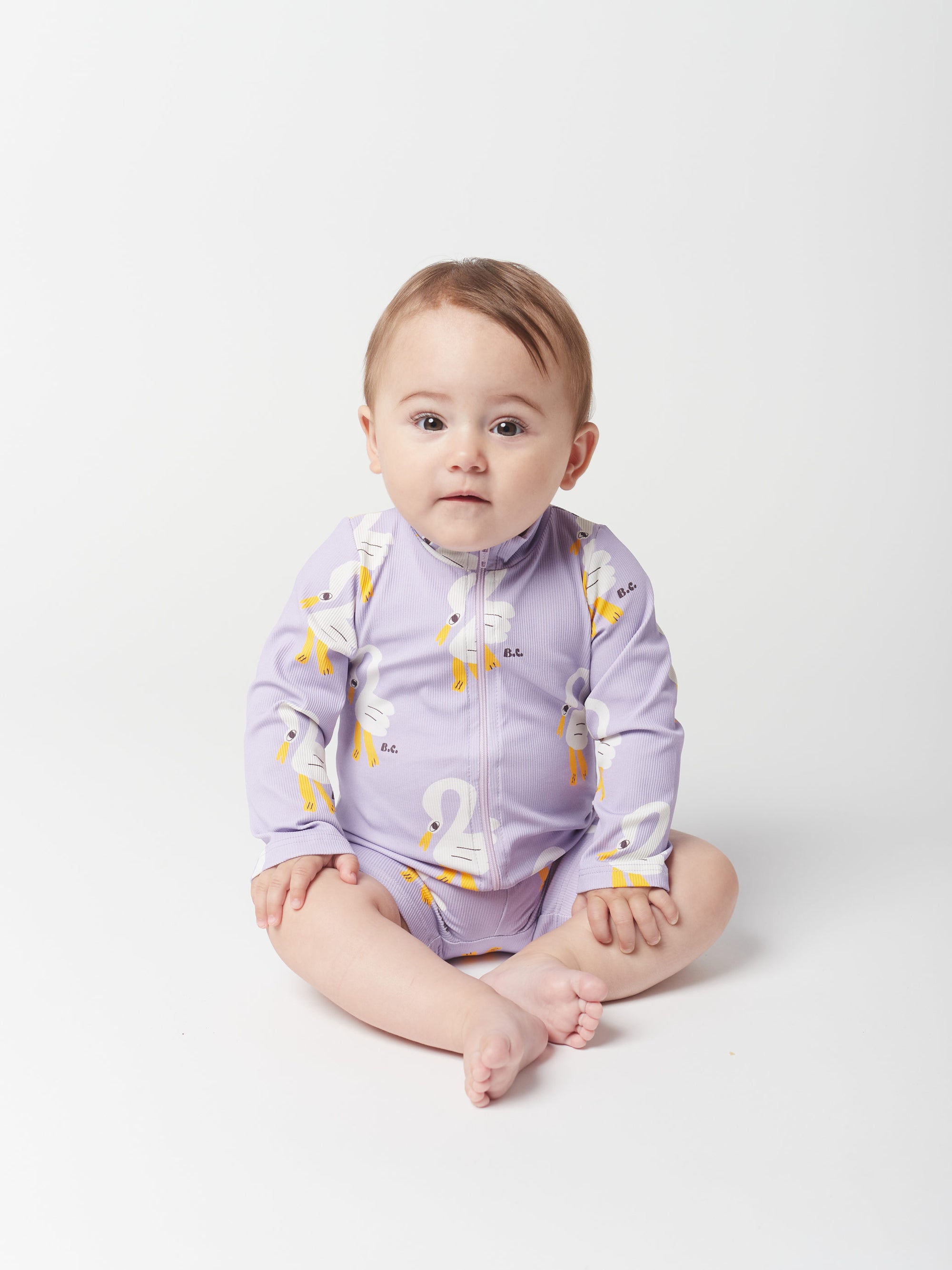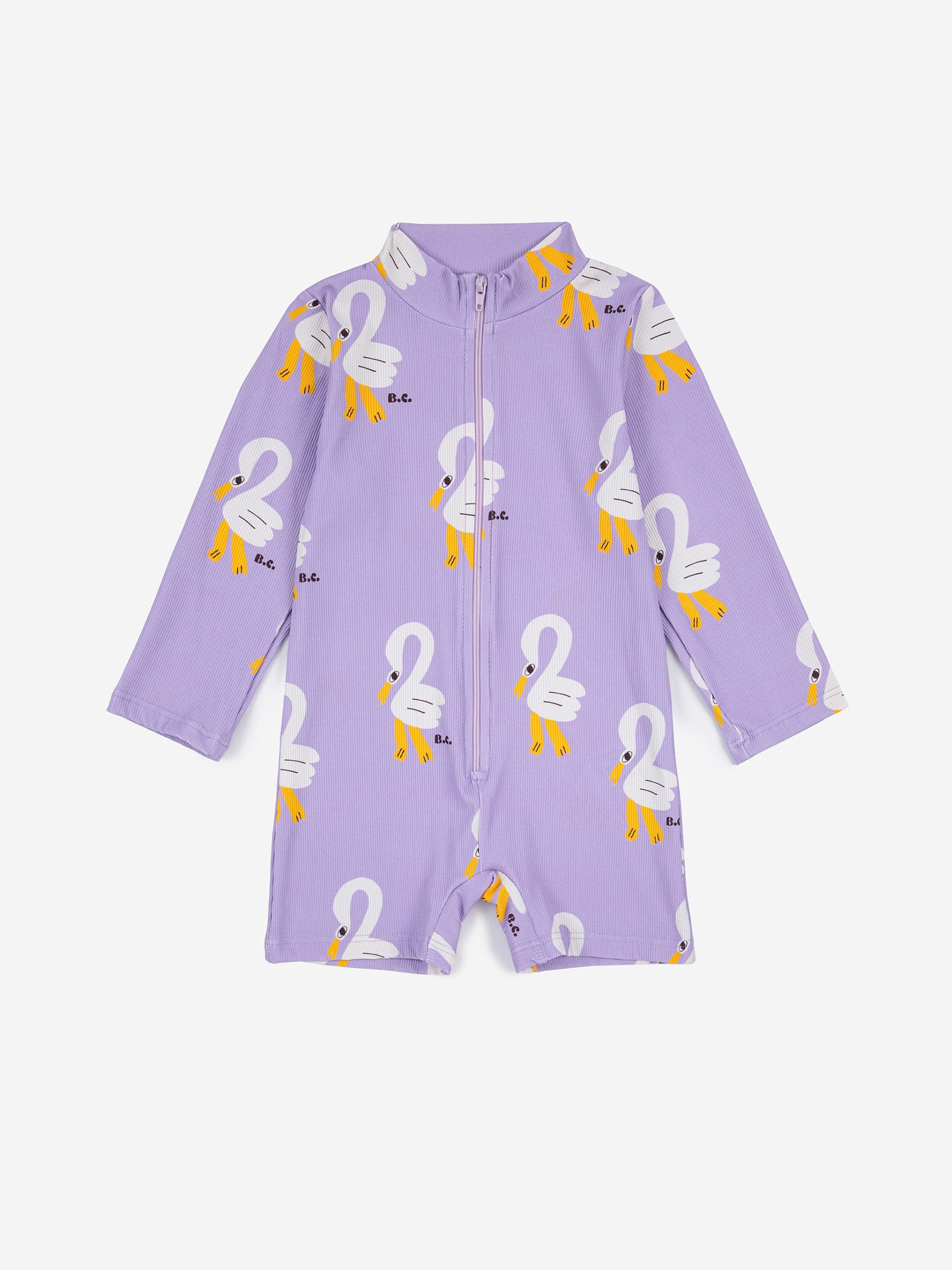 88% polyamide 12% elastane lavender playsuit swimwear. Designed with long sleeves and front zip fastening. It has a slim fit. Made in Spain