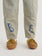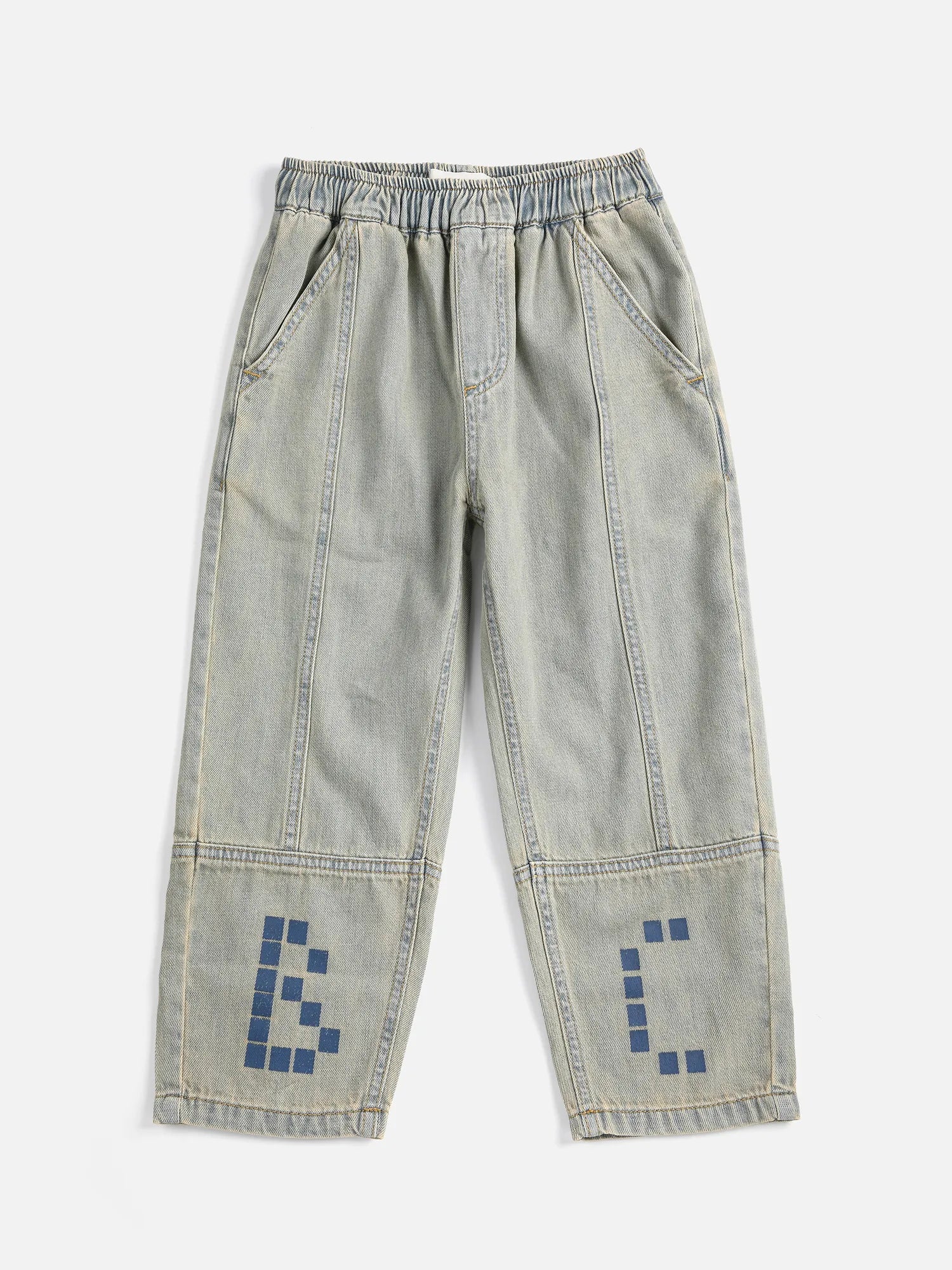 Prussian blue pants. Designed with front button fastening, front zip fastening, elasticated waistband, slash pocket, cocoon fit, back yoke, beltloop, long length, patch pocket and denim. Made in Portugal.