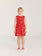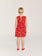 Red dress. Designed with sleeveless, front button fastening, embroidery, evasé fit, over knee length, round neck and seam pocket. Made in Spain.