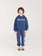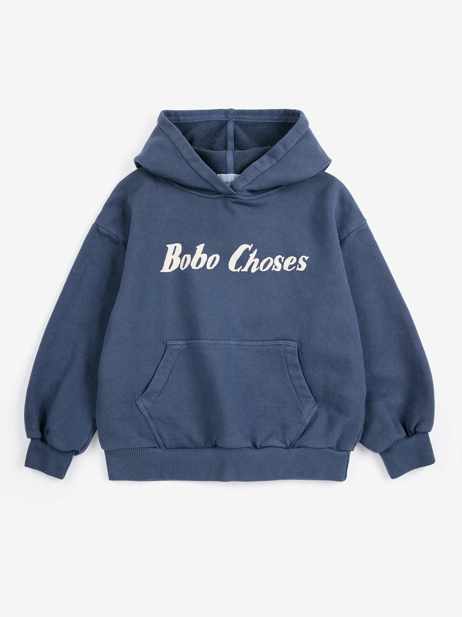 17% cotton, 66% organic cotton, 17% recycled cotton navy blue sweatshirt. Designed with hooded, long sleeves, dropped shoulder, ribbed cuffs, loose fit, ribbed bottom, kangaroo pocket and fleece. Made in Spain.