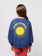 The long-sleeved navy blue ‘Sun’ sweatshirt for kids features an iconic yellow sun print on the front. Made from GOTS-certified organic cotton and recycled cotton, it has a brushed fleece interior. The ribbed cuffs and hem help keep it in place, while the loose fit and dropped shoulders offer ample space for movement.