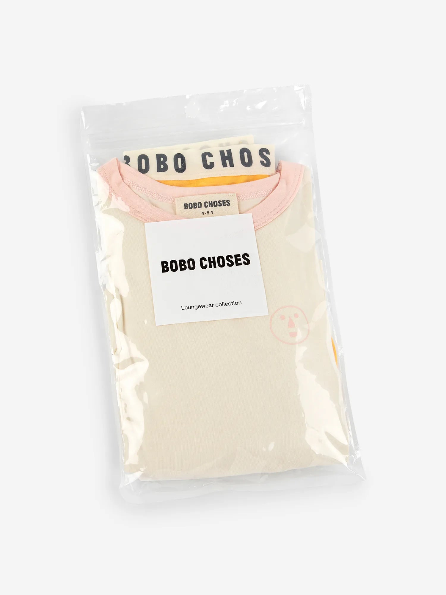 A warm touch of comfort! This curry innerwear set includes a slim-fit long-sleeve T-shirt and stretchy leggings that move with every jump, twirl, and nap. The organic cotton and modal blend makes it ultra-soft and breathable—perfect for lounging or layering. Crafted with 45% modal, 43% organic cotton and 12% elastane.