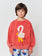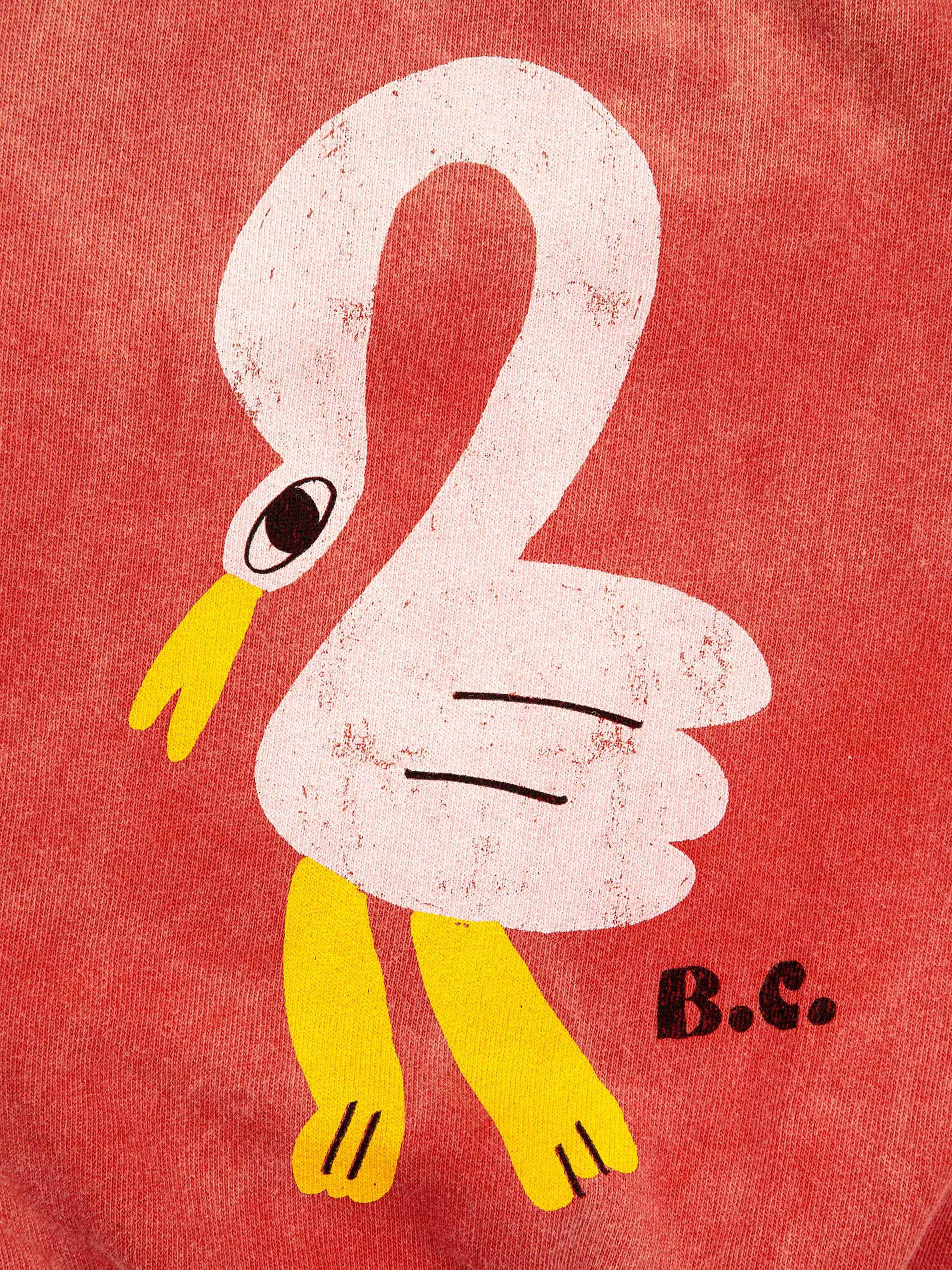 100% organic cotton red round neck sweatshirt. Designed with long sleeves, ribbed cuffs, ribbed bottom, round neck and fleece. It has a loose fit. Made in Spain