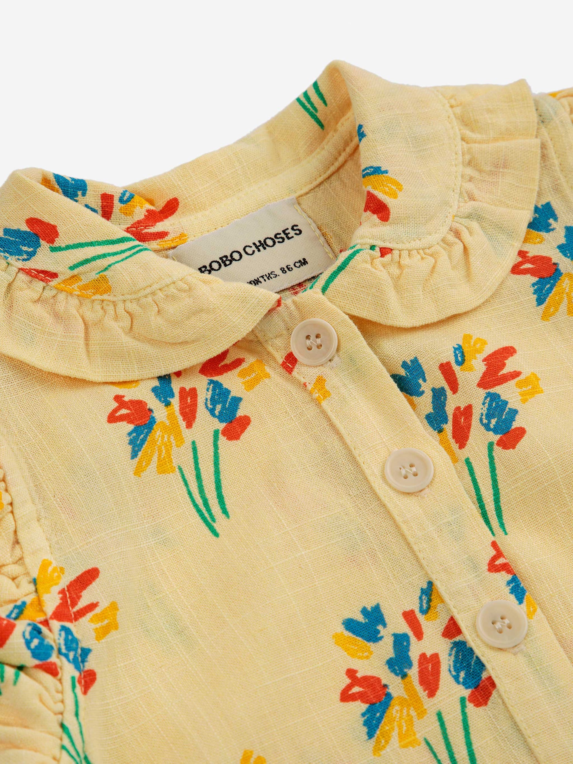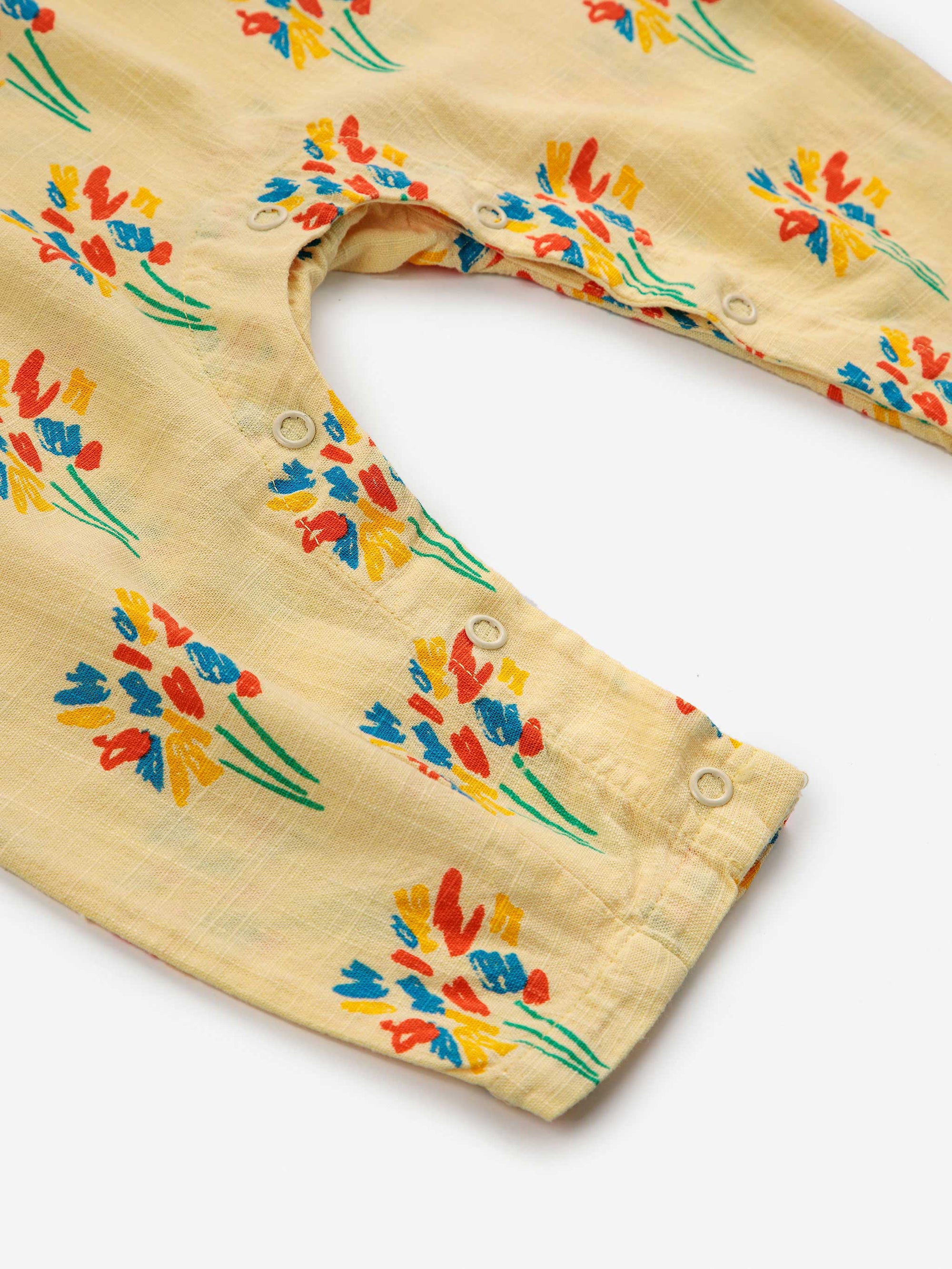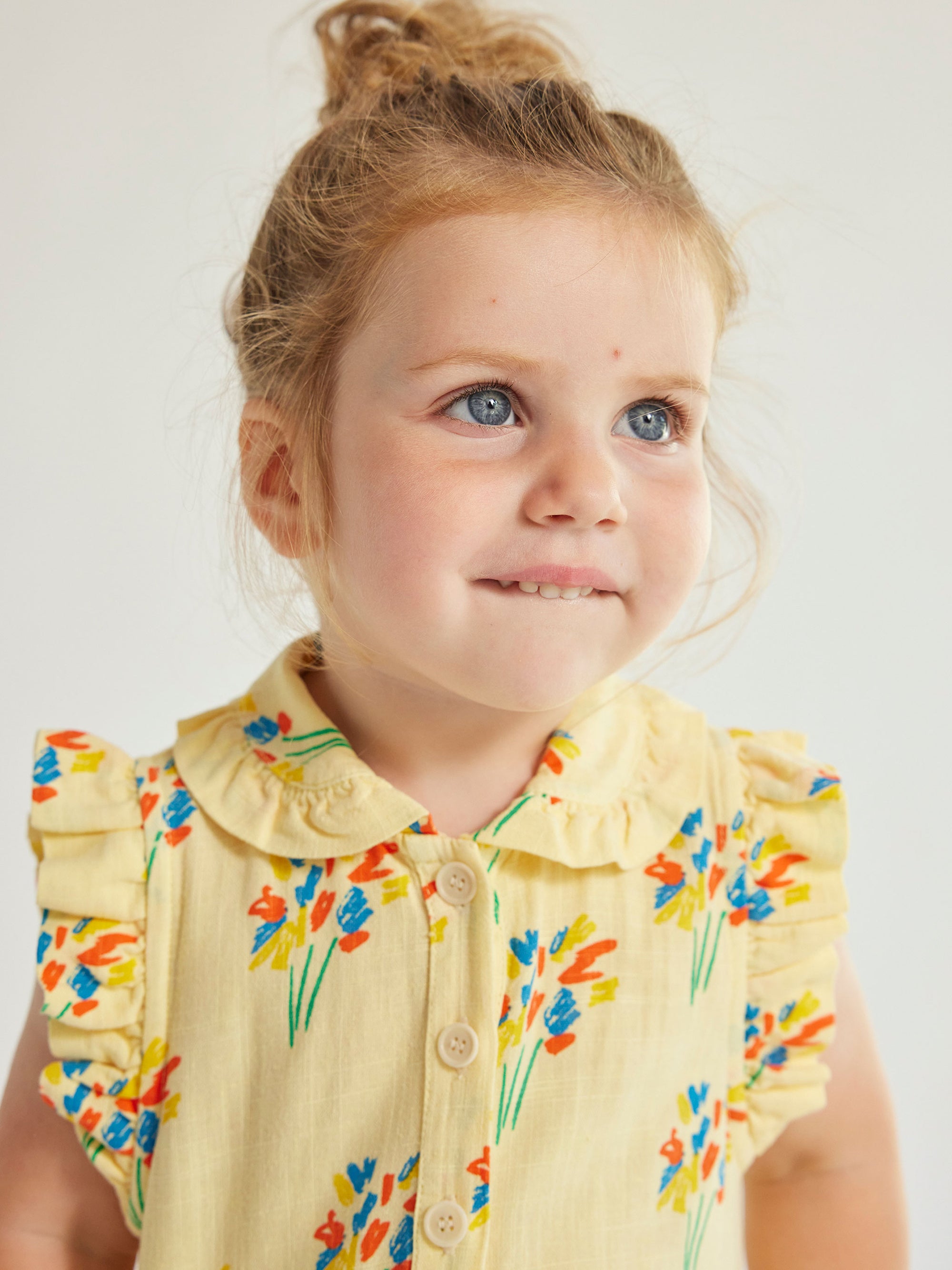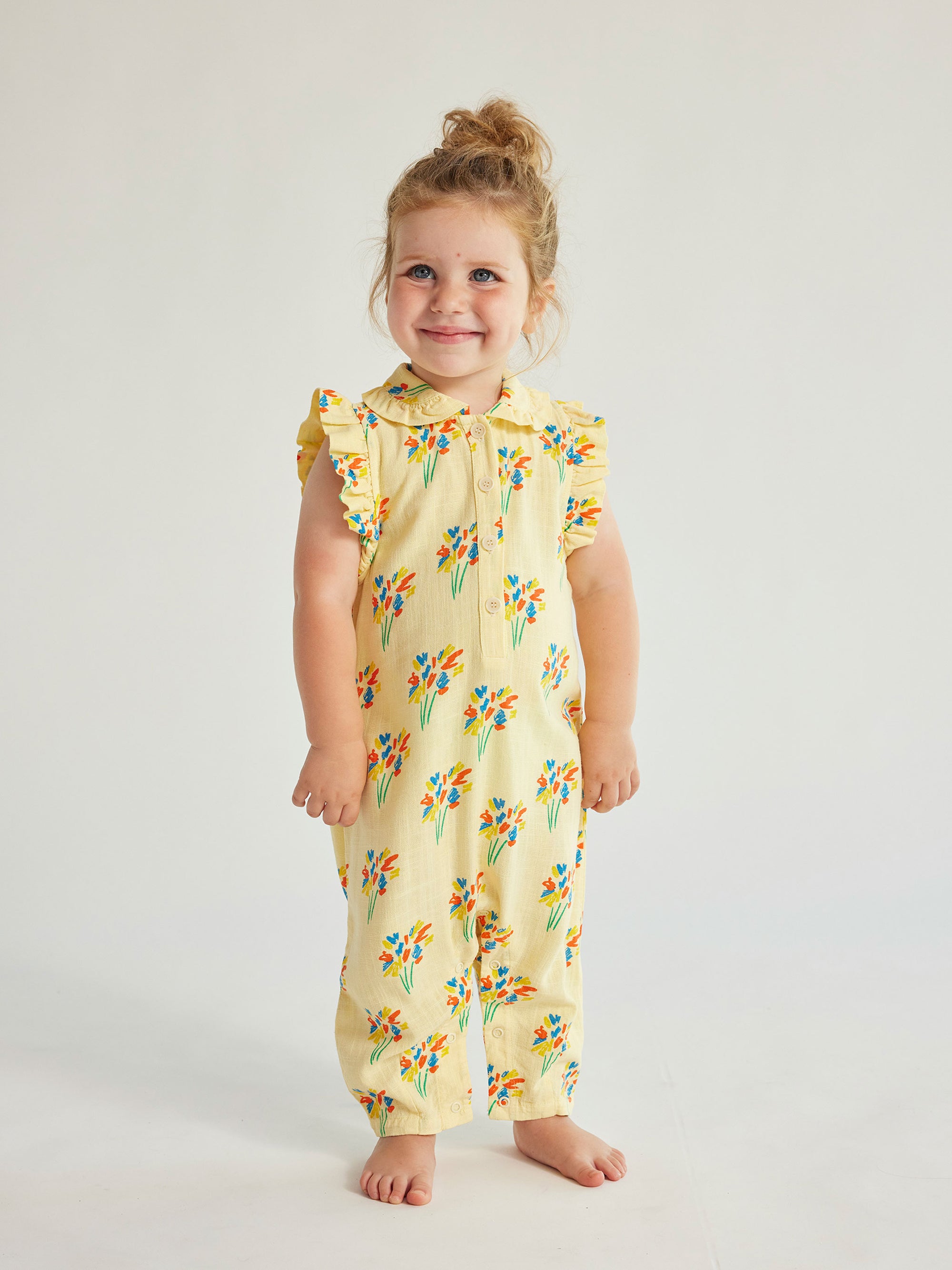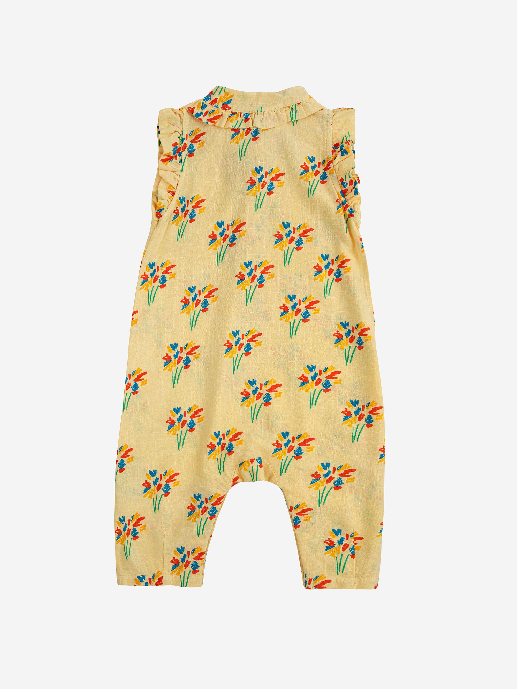 85% viscose, 15% linen light yellow overall. Designed with sleeveless, front button fastening, crotch snap fastening, straight fit and round neck. Made in Spain.
