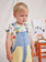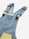 76% cotton, 24% recycled cotton blue playsuit. Designed with adjustable straps, shoulder button fastening, loose fit, short, patch pocket and wide shoulder straps. Made in Portugal.