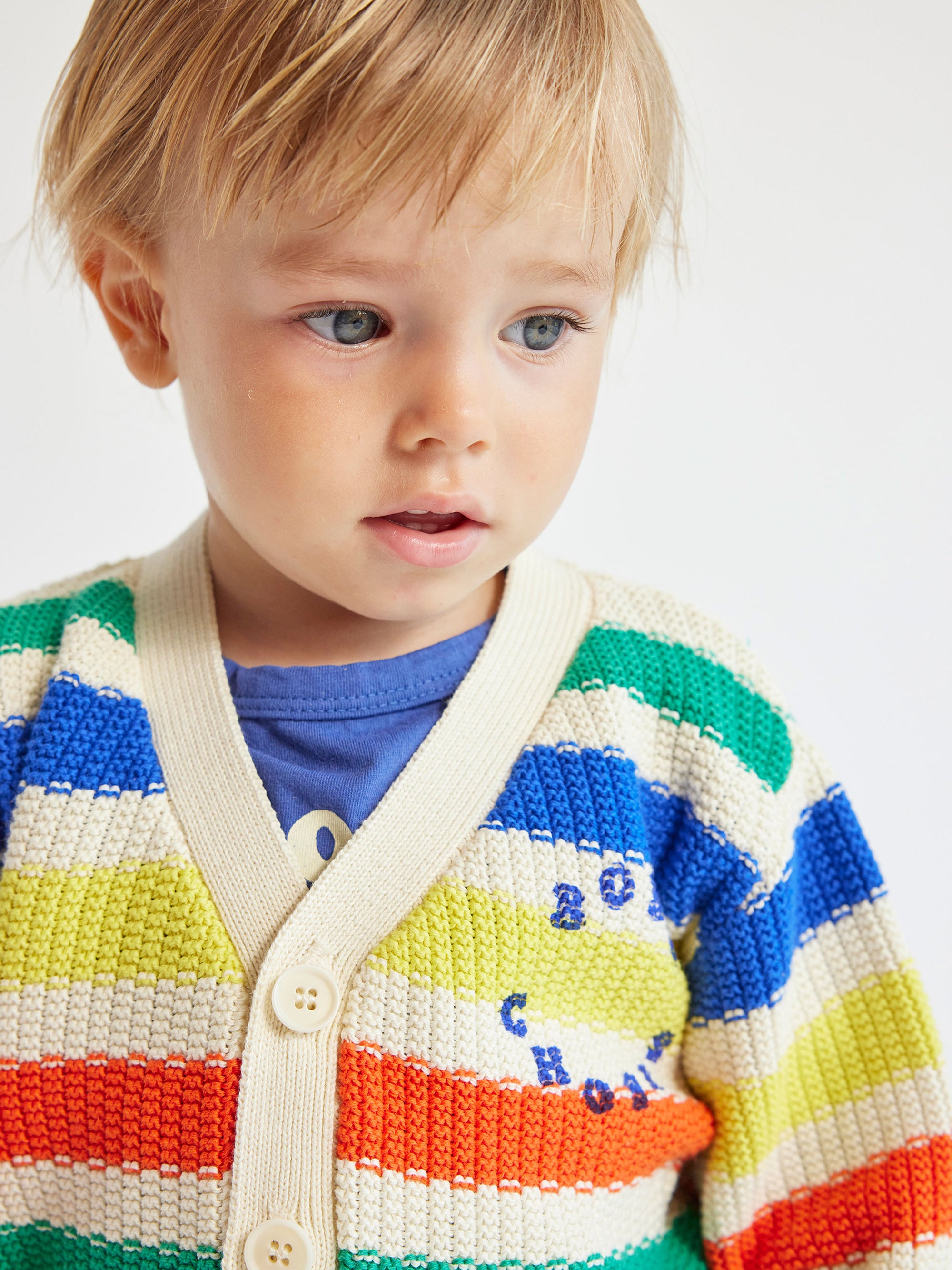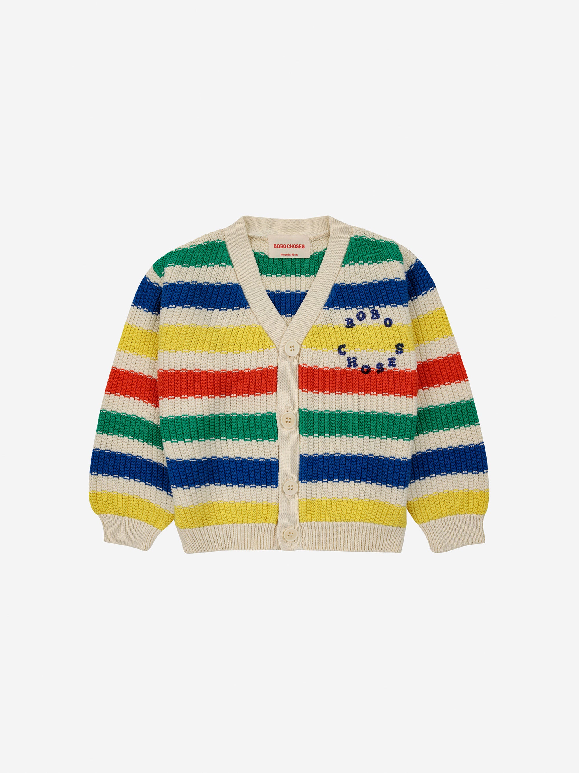 100% organic cotton green cardigan. Designed with v-neck, long sleeves, dropped shoulder, front button fastening, ribbed cuffs, texture knit, loose fit and ribbed bottom. Made in Spain.