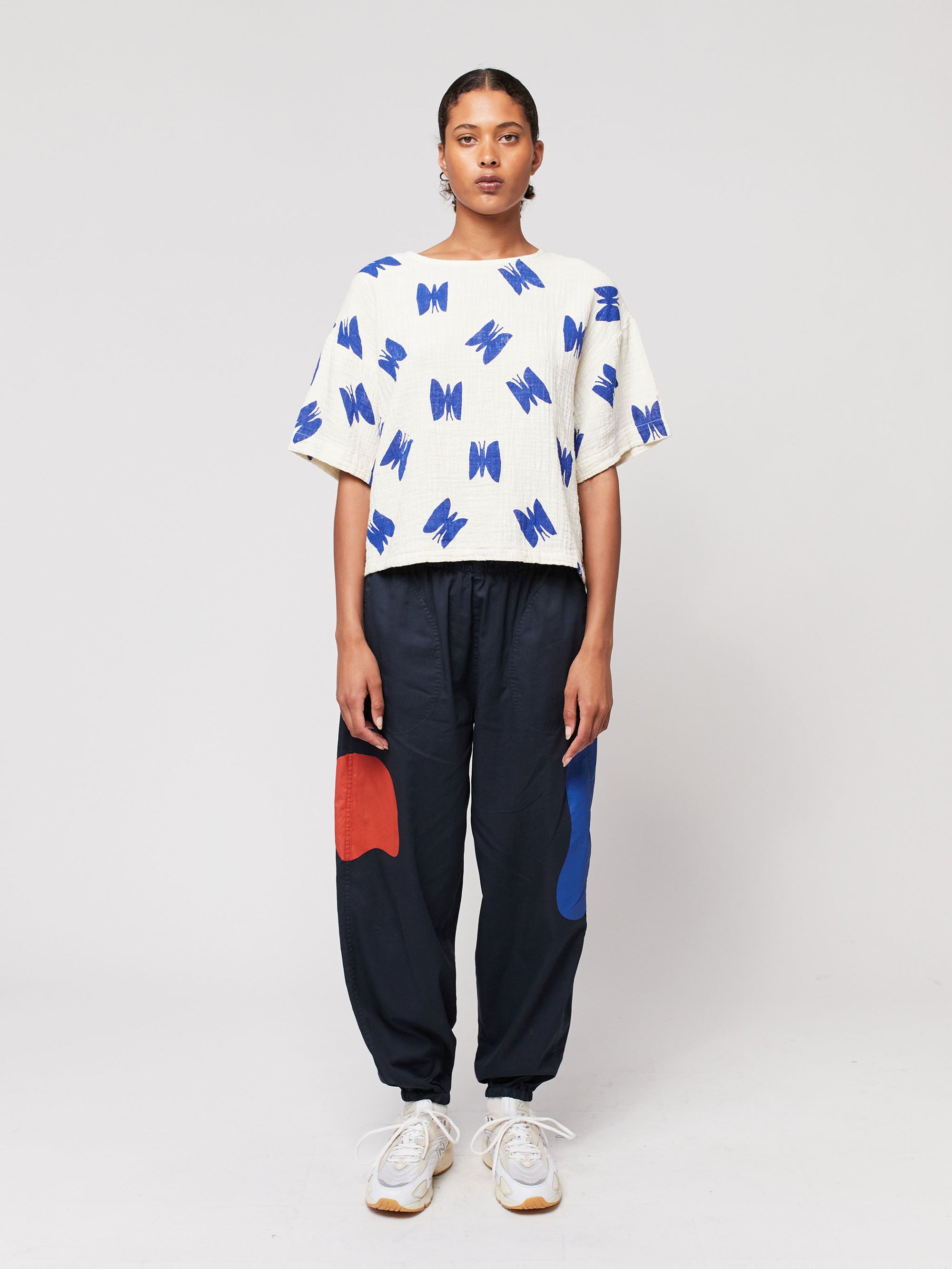 Butterfly print cropped blouse