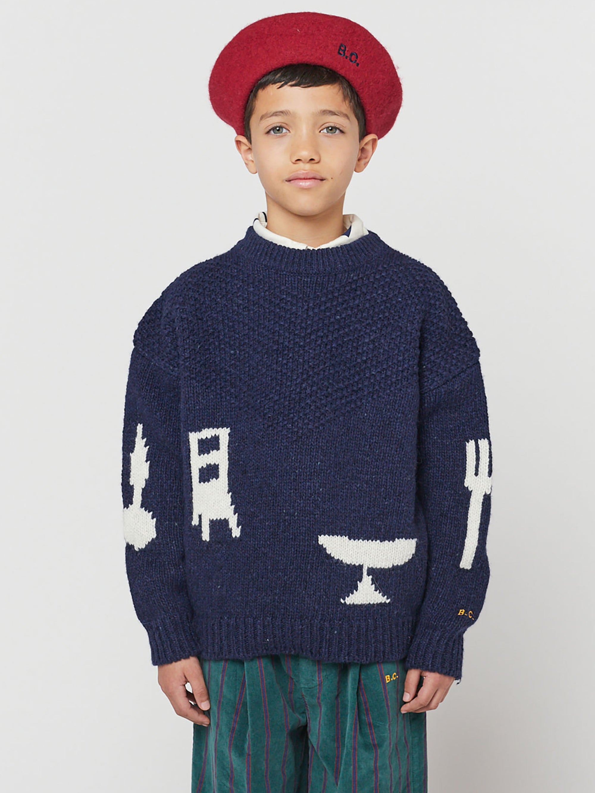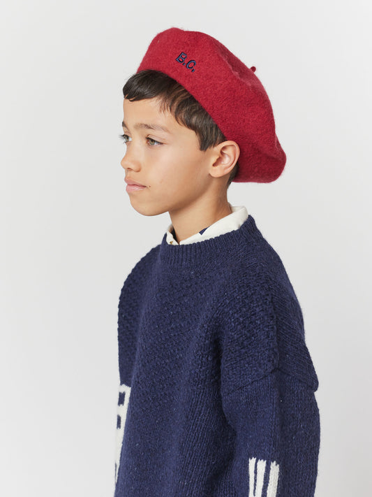 60% wool 30% poliamide 10% alpaca wool navy blue jumper. Designed with tailored collar, long sleeves, dropped shoulder, front button fastening, buttoned cuffs, embroidery and loose fit. Made in Spain.