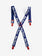 Navy blue suspenders. Made in China.