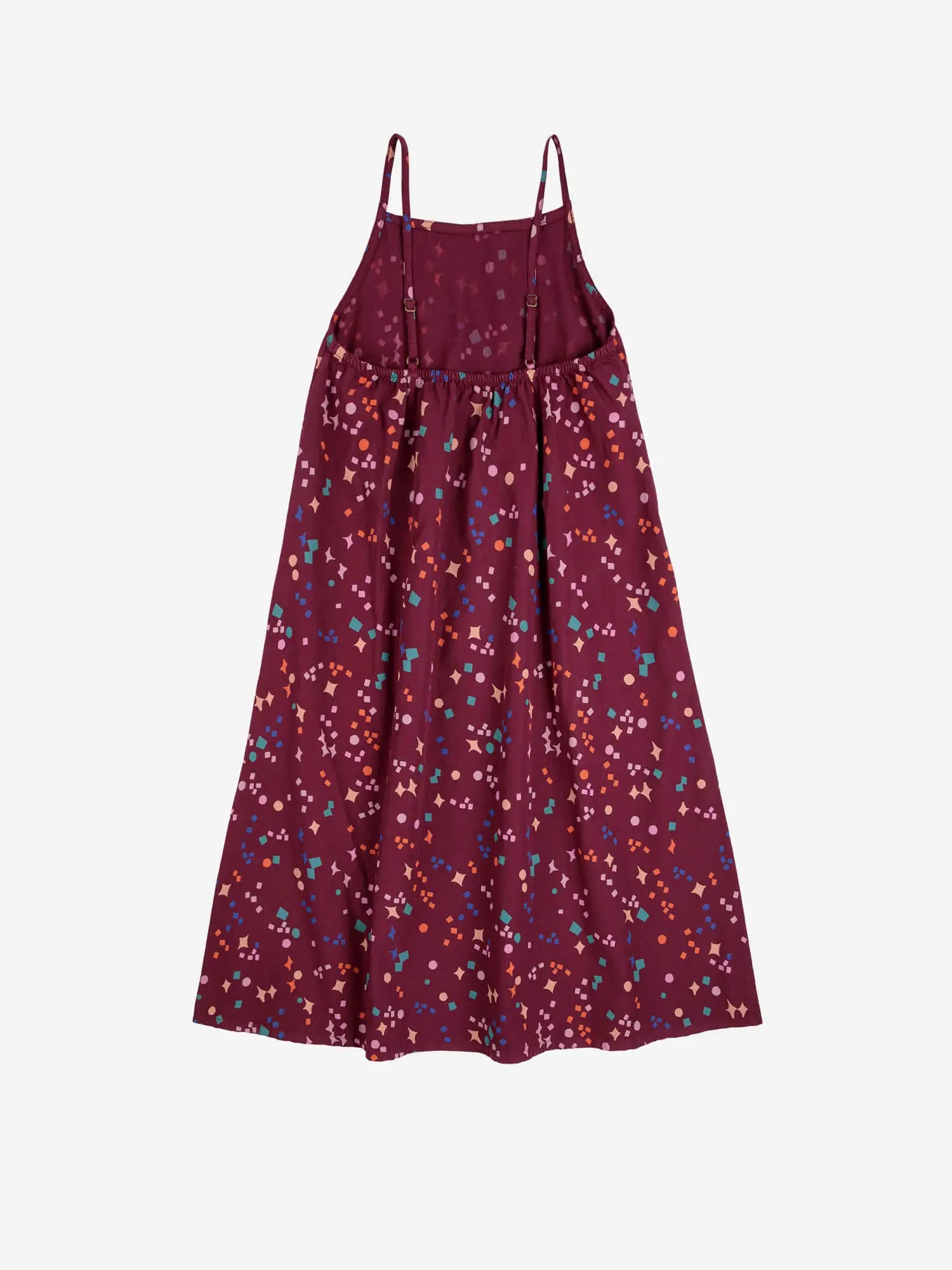 This sleeveless burgundy dress, made from 100% organic cotton, features adjustable straps and an A-line fit. Designed for easy movement and below-knee length, it’s perfect for both playtime and special occasions. Made in Spain.