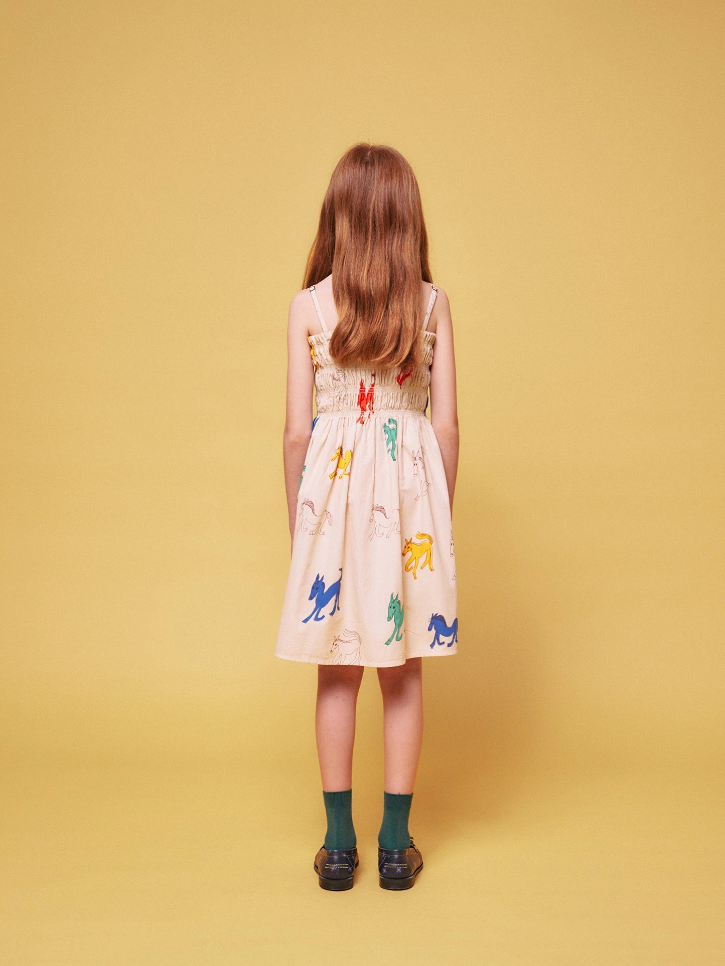 We aim to stimulate kids’ creativity through style. Our sleeveless strap dress 'Wonder Horse', with playful multicoloured horse drawings, it's easy to mix and match with other pieces. Inspire boys and girls to experiment by layering colours, patterns, and textures to create unique looks that showcase their personality.