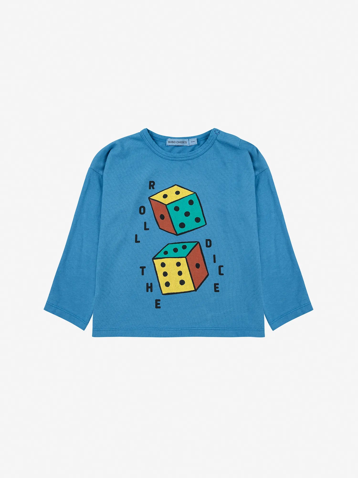 Blue t-shirt. Designed with long sleeves, dropped shoulder, shoulder snap fastening, loose fit and round neck. Made in Portugal.