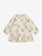 Offwhite dress. Designed with long sleeves, raglan sleeves, back button fastening, elasticated cuffs, embroidery, evasé fit, over knee length, round neck, fleece and ruffled detailing. Made in Spain.