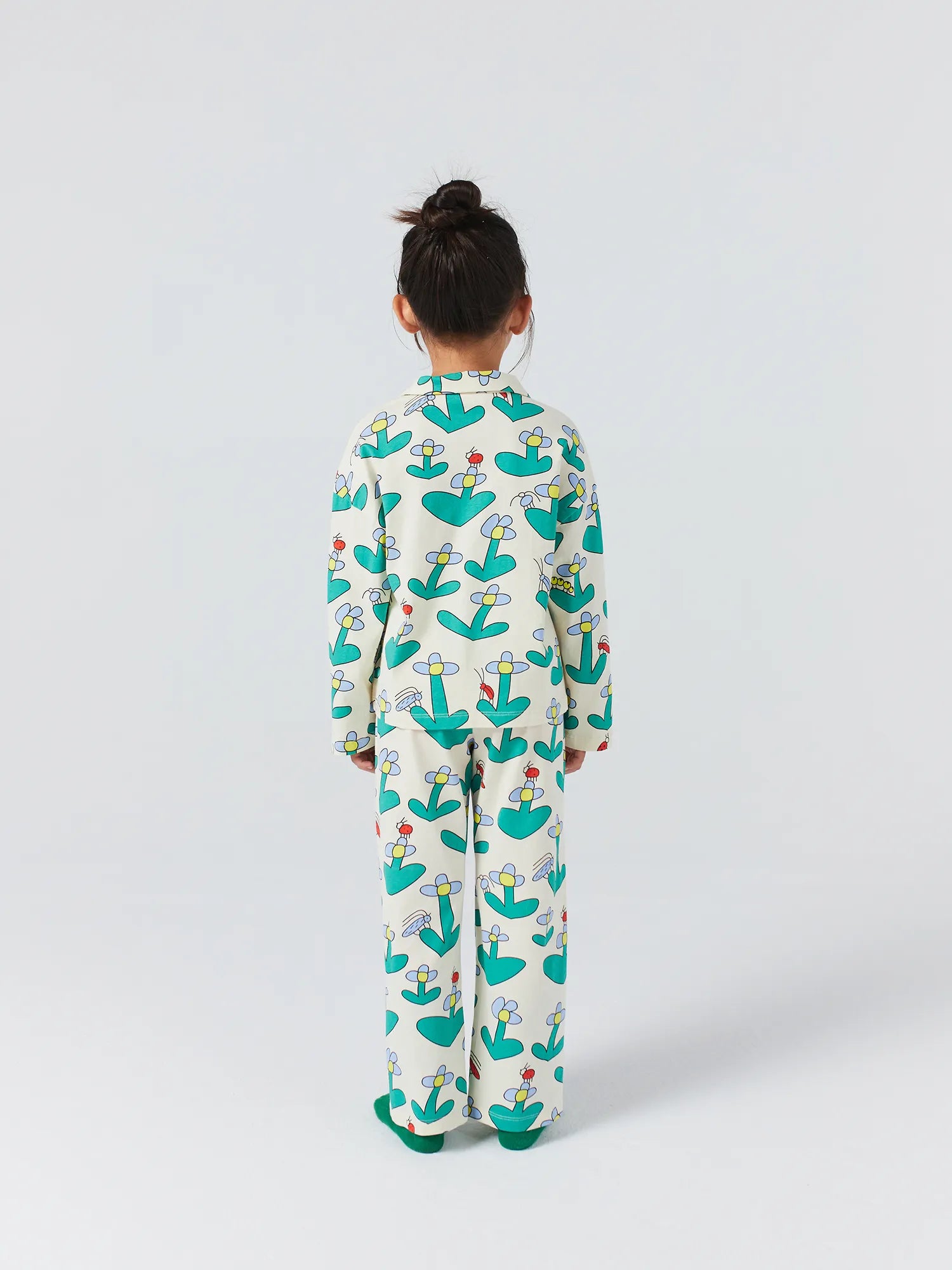 Soft, timeless, and oh-so-comfy! This offwhite loungewear set, made from 100% organic cotton, features a long-sleeve tailored button-up shirt with embroidery and breathable relaxed-fit pants.