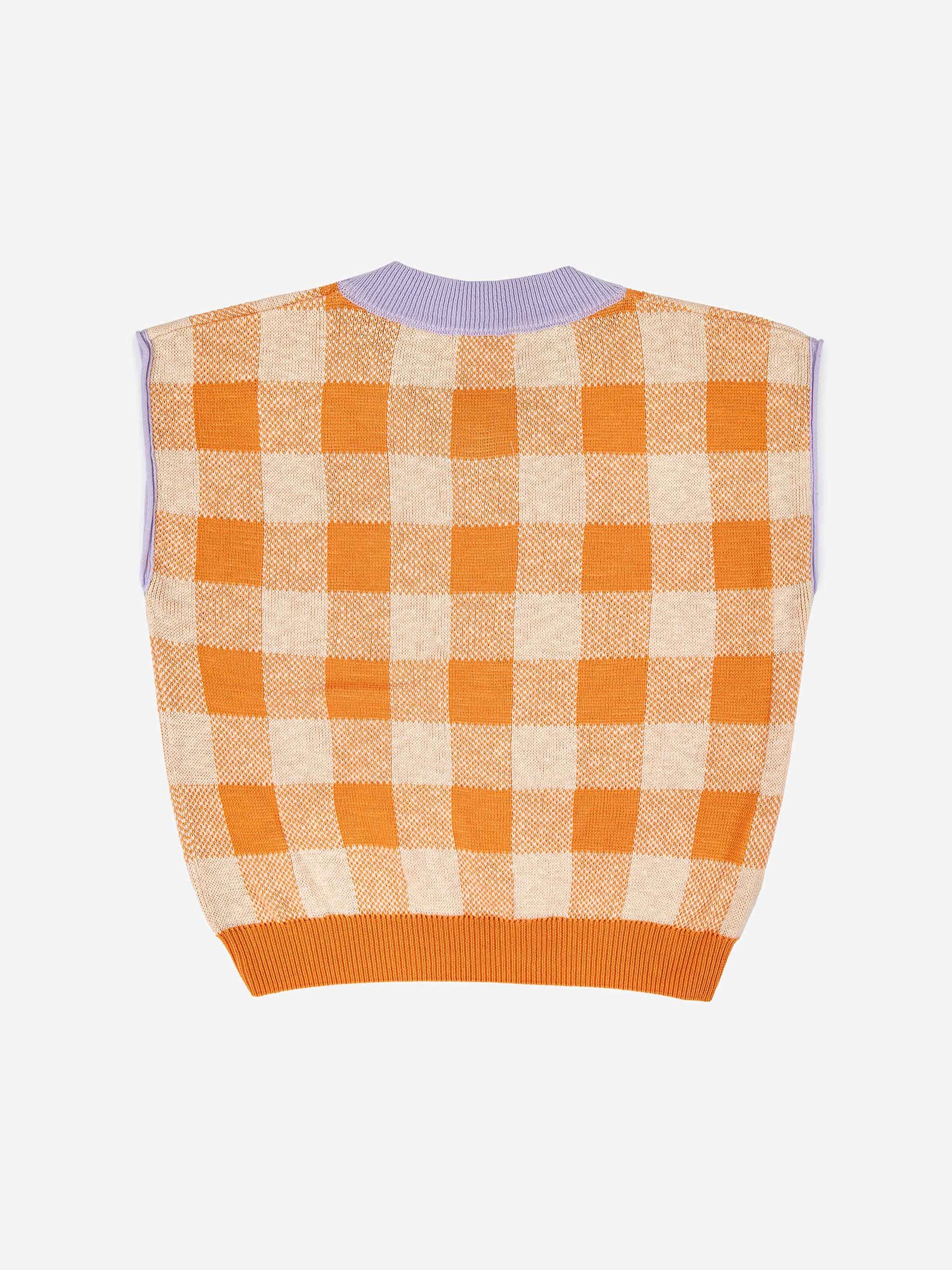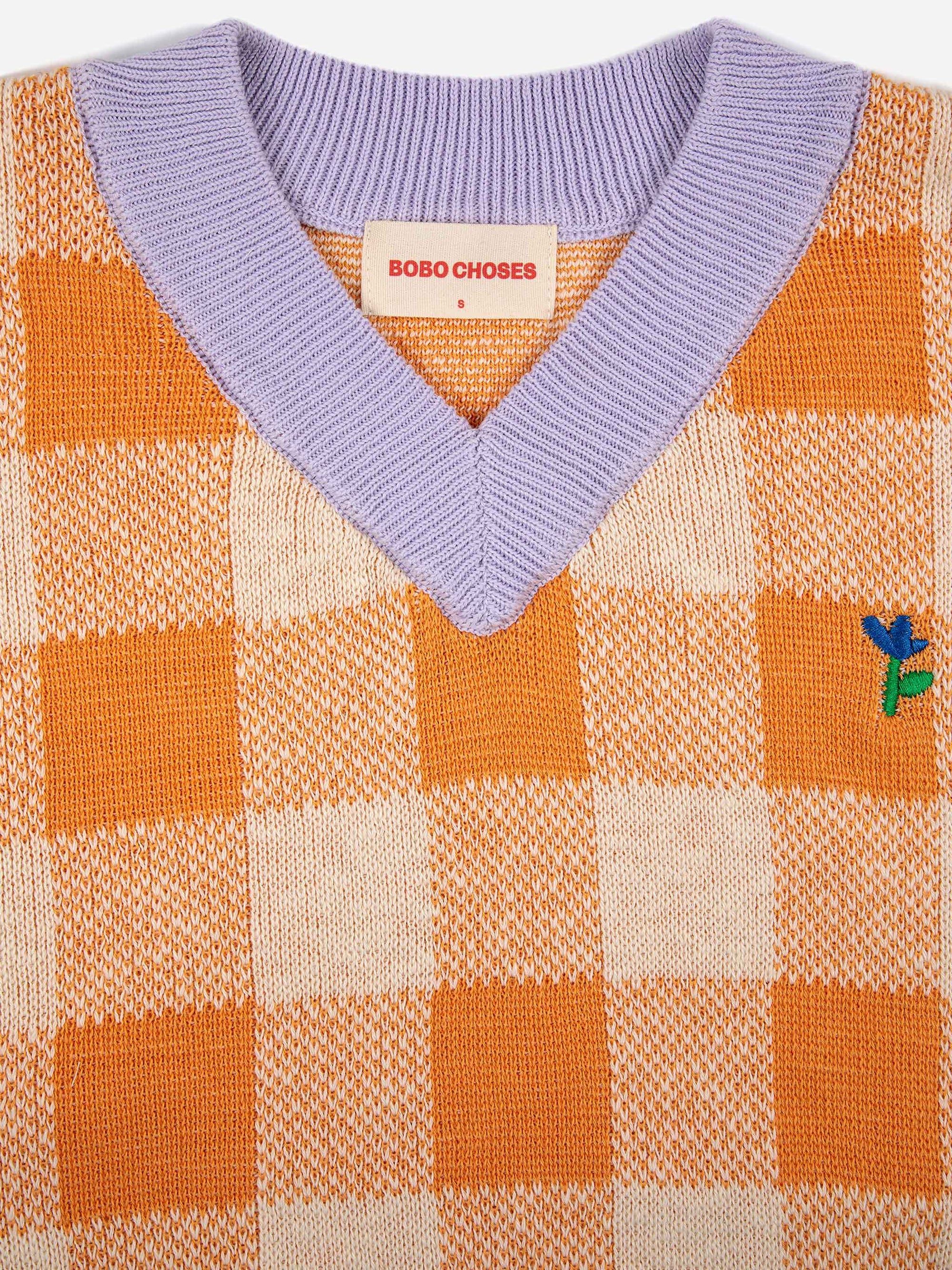 Checked V‑Neck Knitted Vest