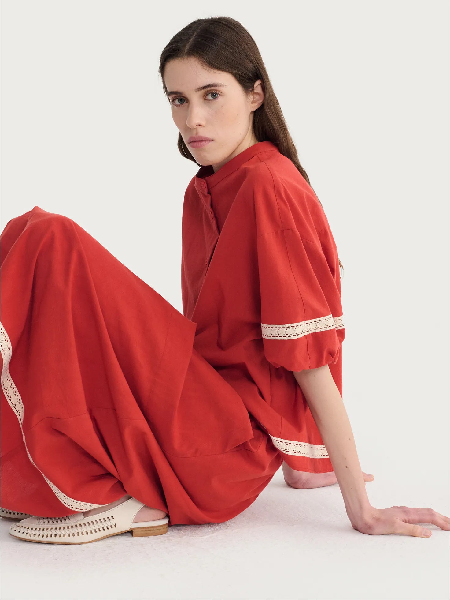 Contrast-trim puff sleeve shirt