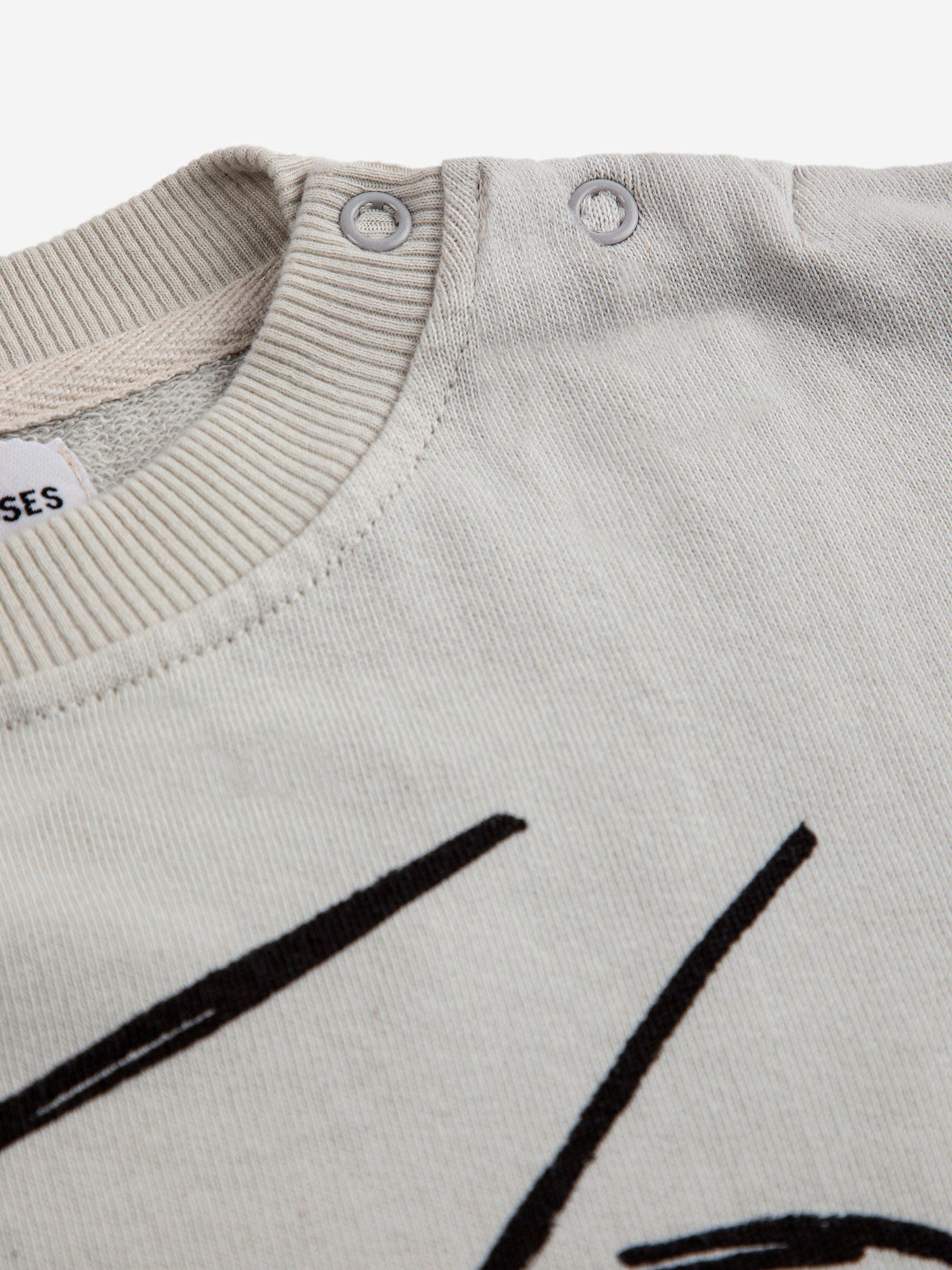 100% organic cotton beige sweatshirt. Designed with long sleeves, dropped shoulder, shoulder snap fastening, ribbed cuffs, loose fit, ribbed bottom, fleece and ribbed crewneck. Made in Spain.