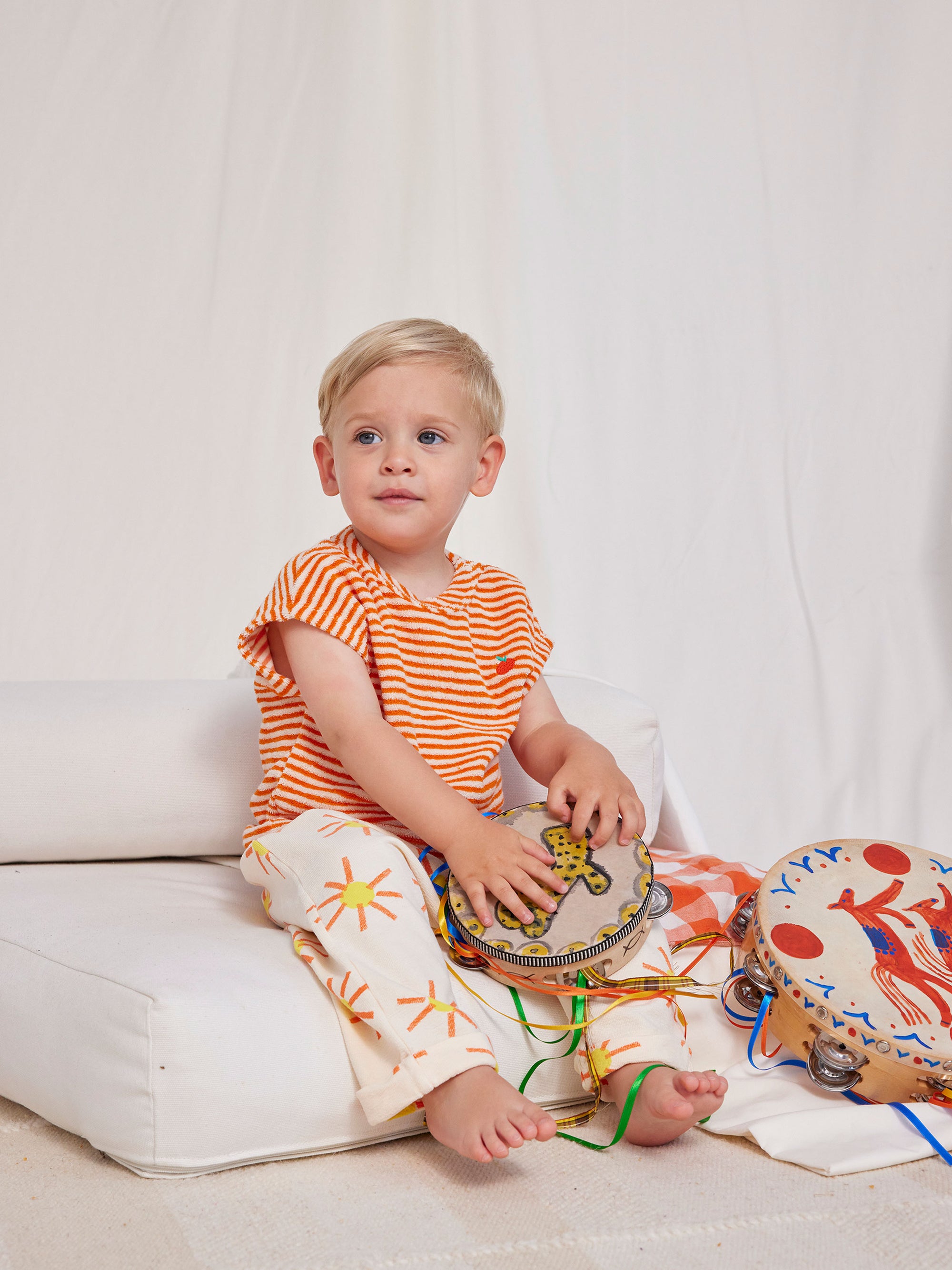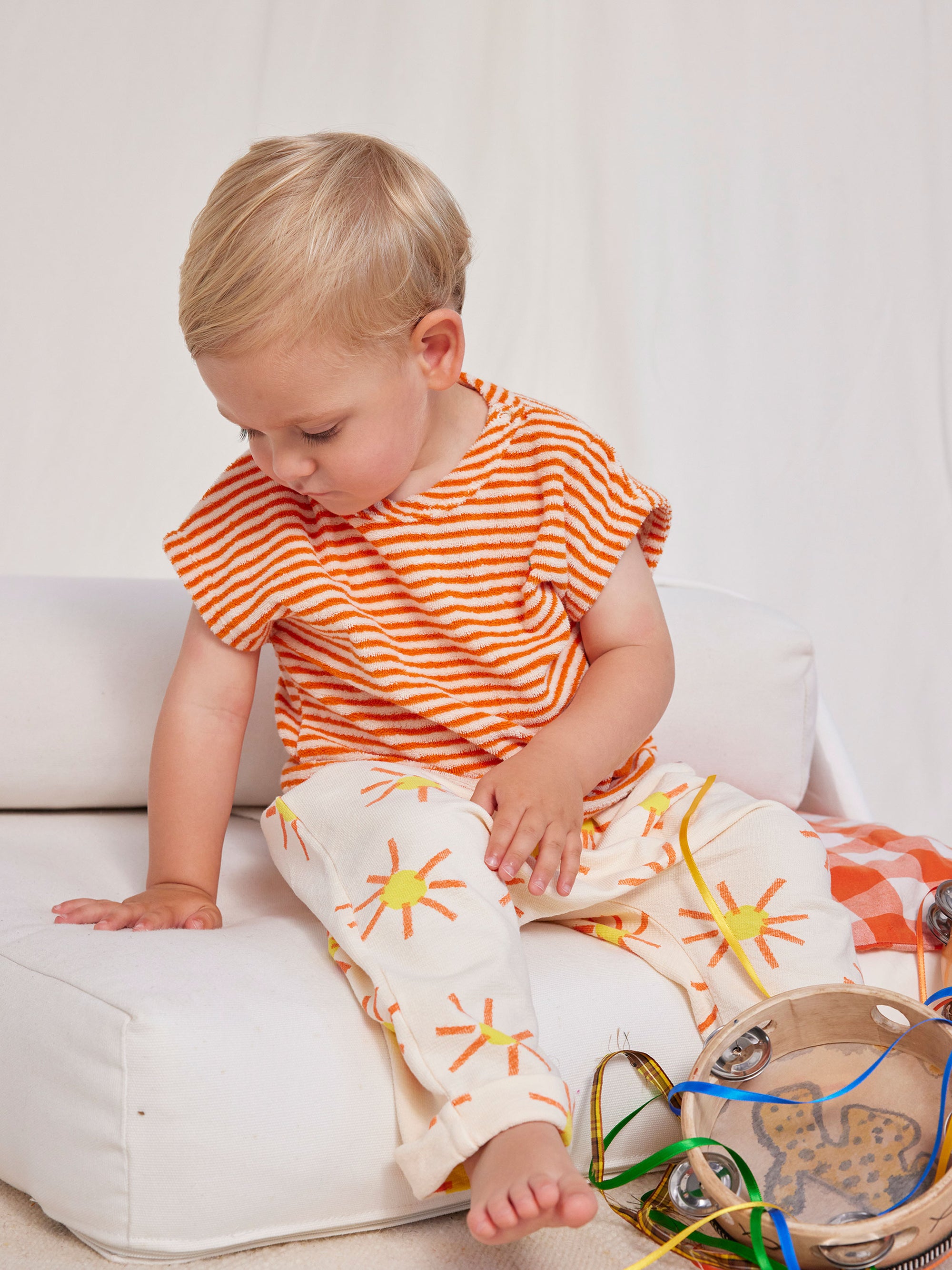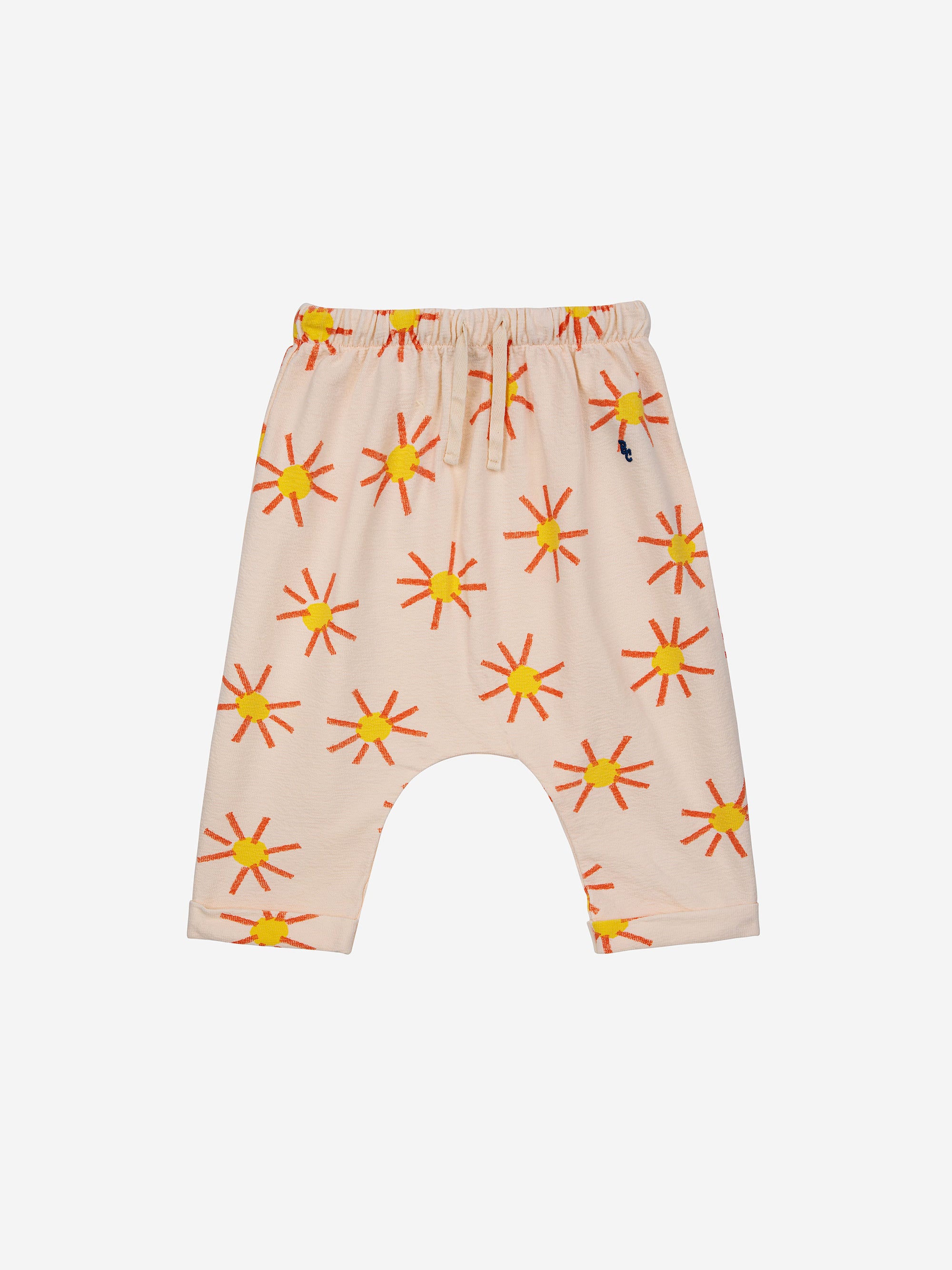 100% organic cotton offwhite pants. Designed with elasticated waistband, embroidery, baggy fit, adjustable drawstring, ankle length, fleece, relaxed crotch and turn up hem. Made in Portugal.