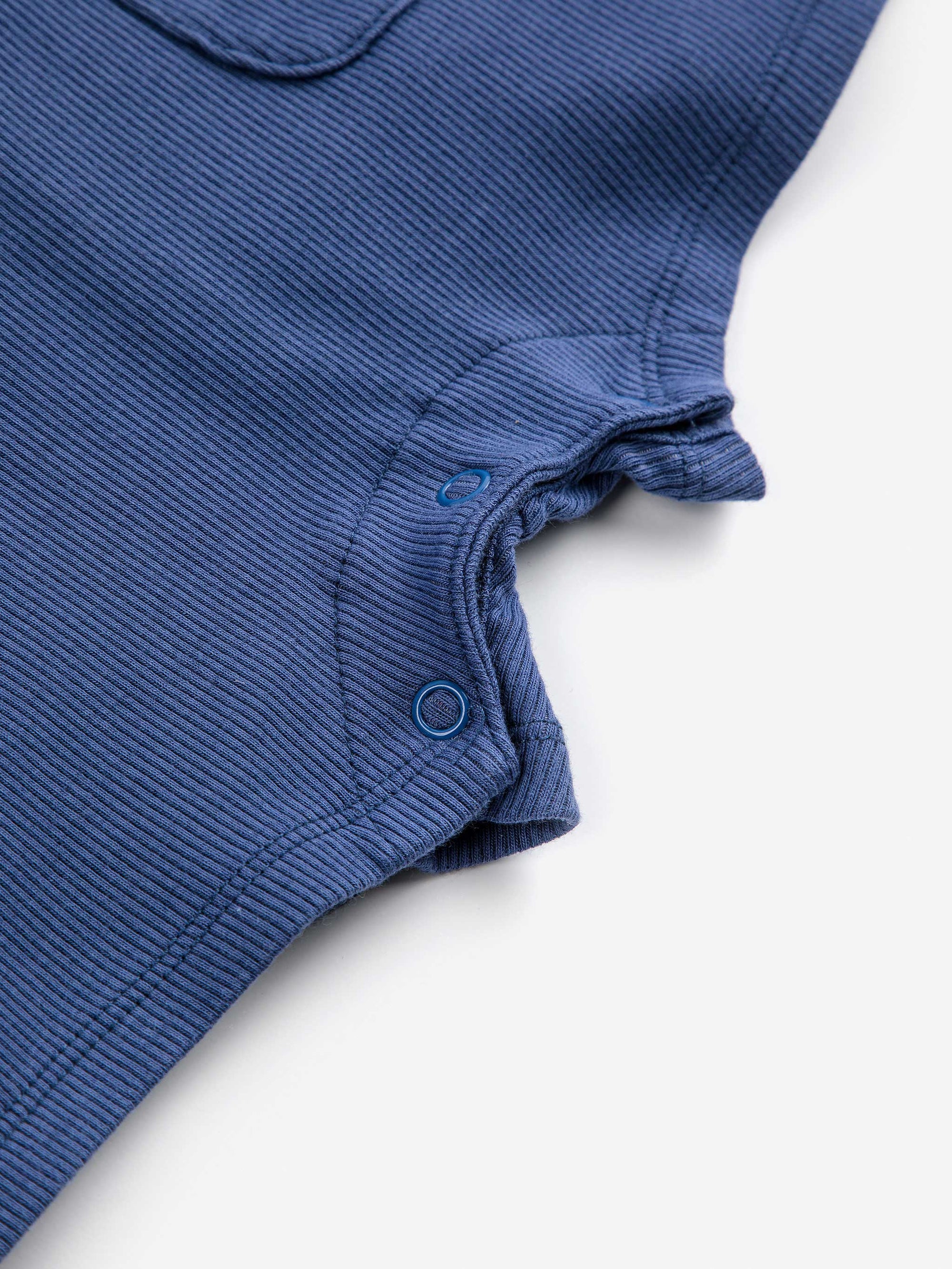 94% organic cotton, 6% elastane navy blue playsuit. Designed with sleeveless, front button fastening, crotch snap fastening, embroidery, straight fit, wide round neck and patch pocket. Made in Spain.