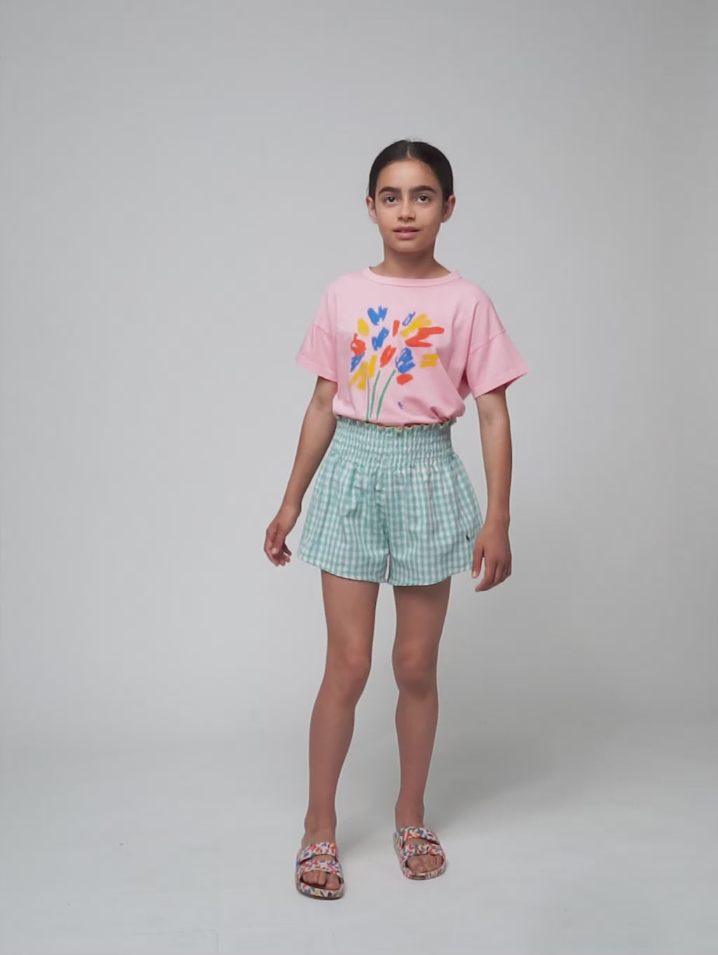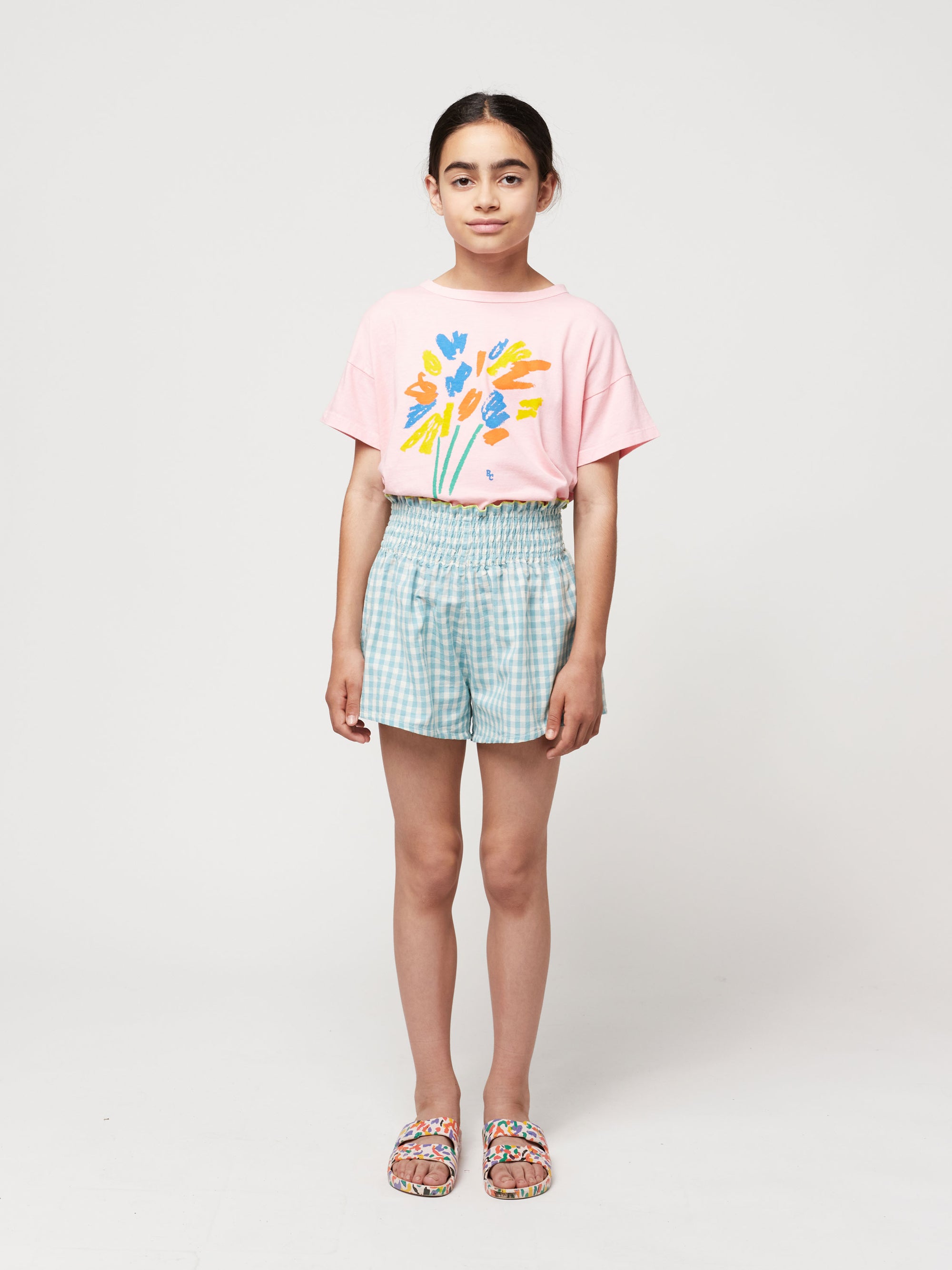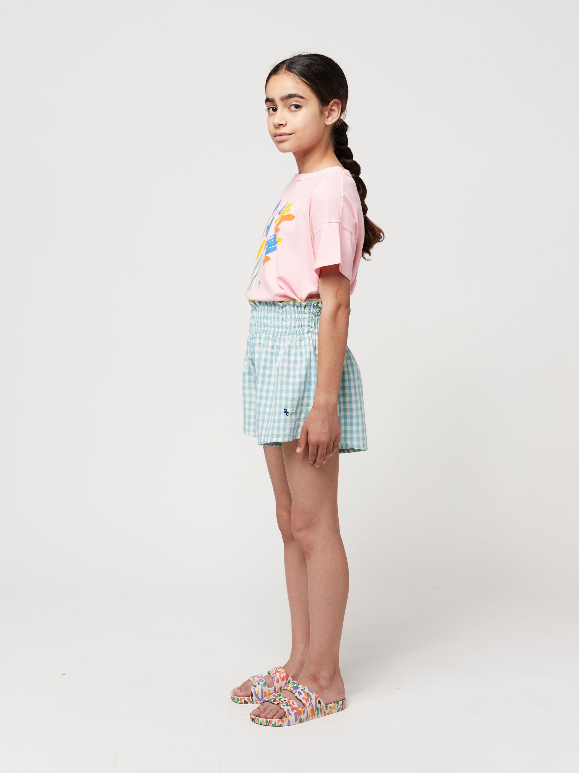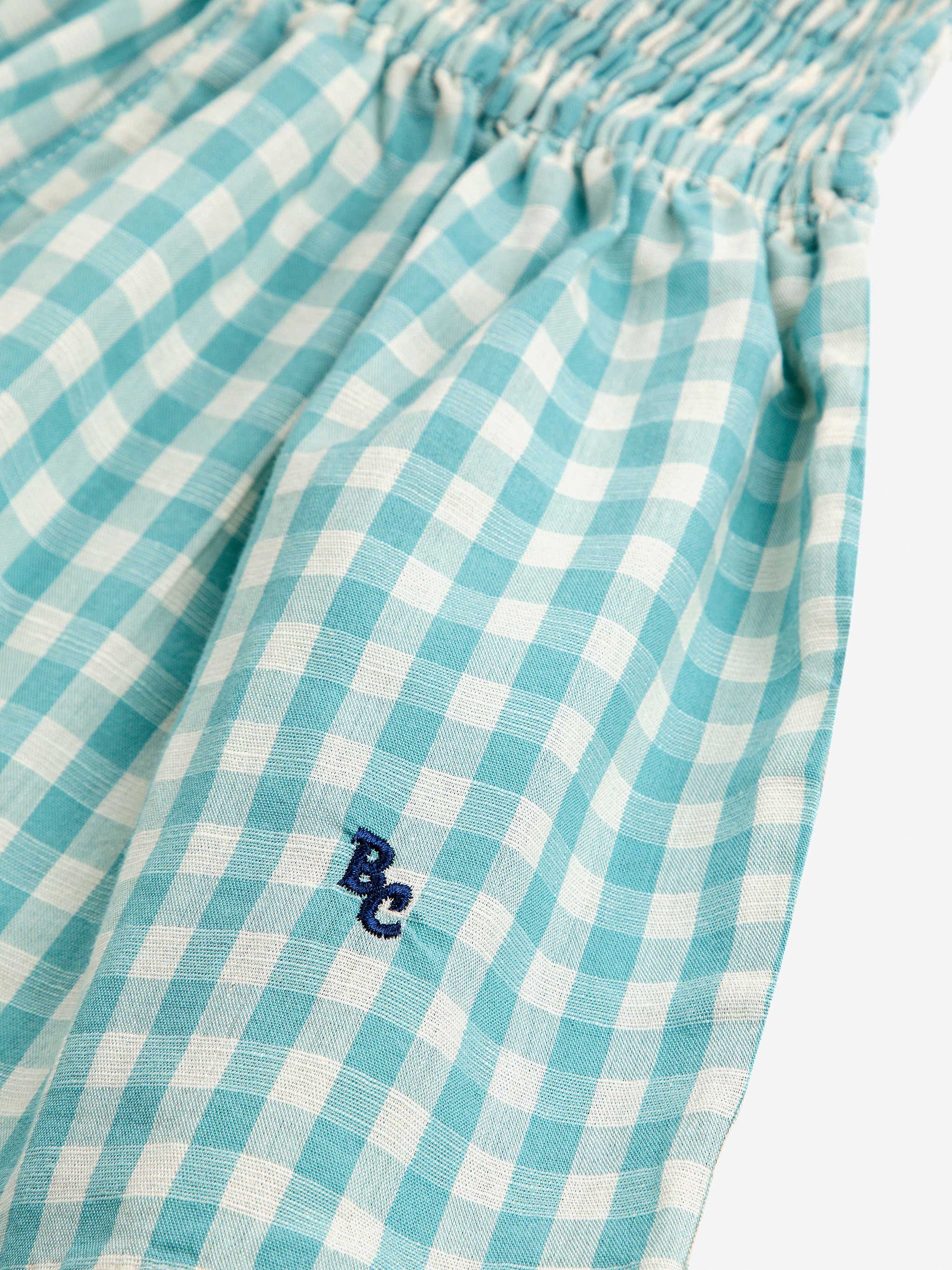 79% cotton, 21% linen light blue shorts. Designed with regular crotch, elasticated waistband, evasé fit, regular, short, patch pocket, seam pocket, linen blend and contrast topstitching. Made in Spain.