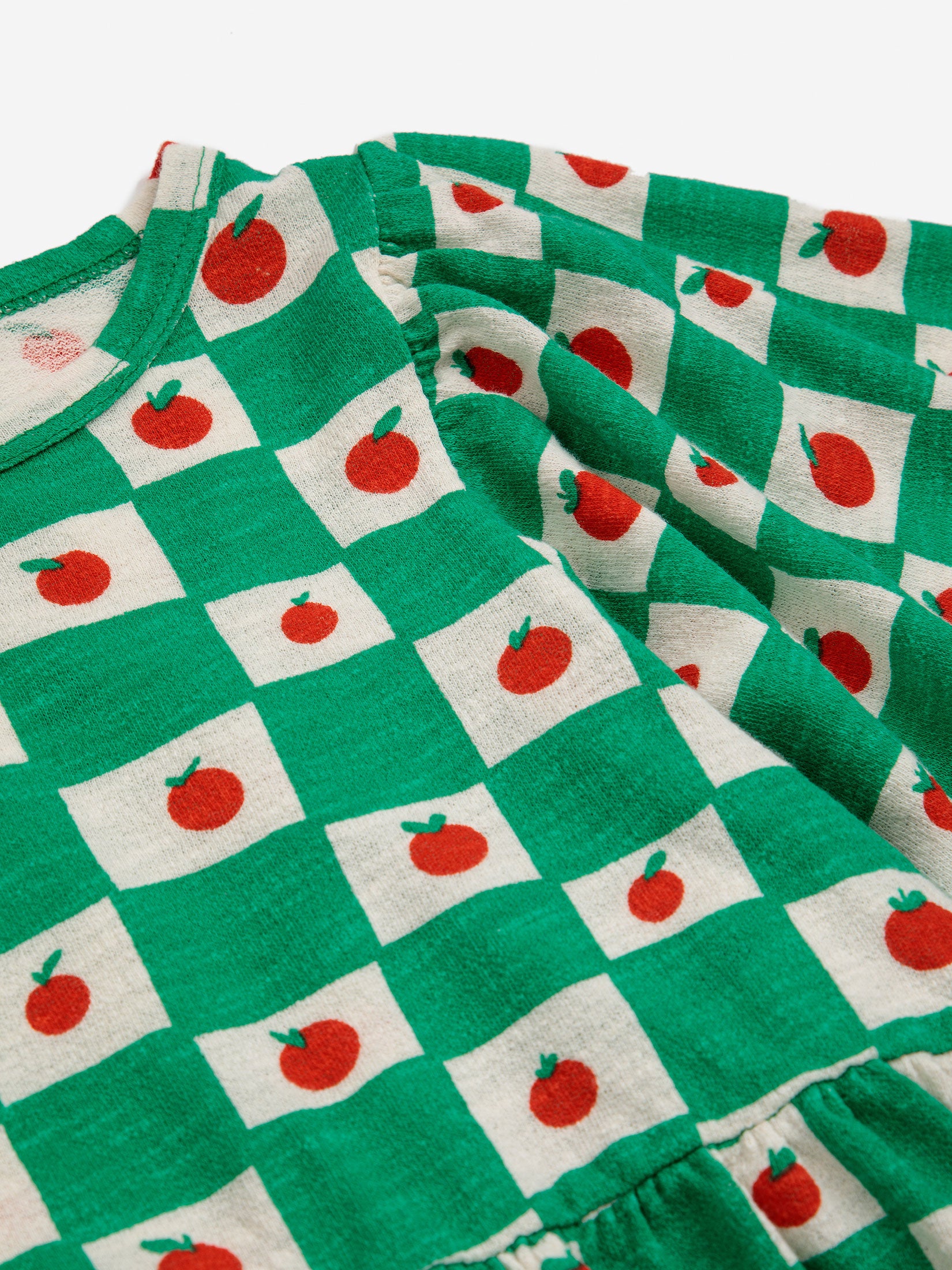 100% organic cotton offwhite dress. Designed with short sleeves, gathering detail, evasé fit, short, round neck, flare sleeve and rustic fabric. Made in Spain.