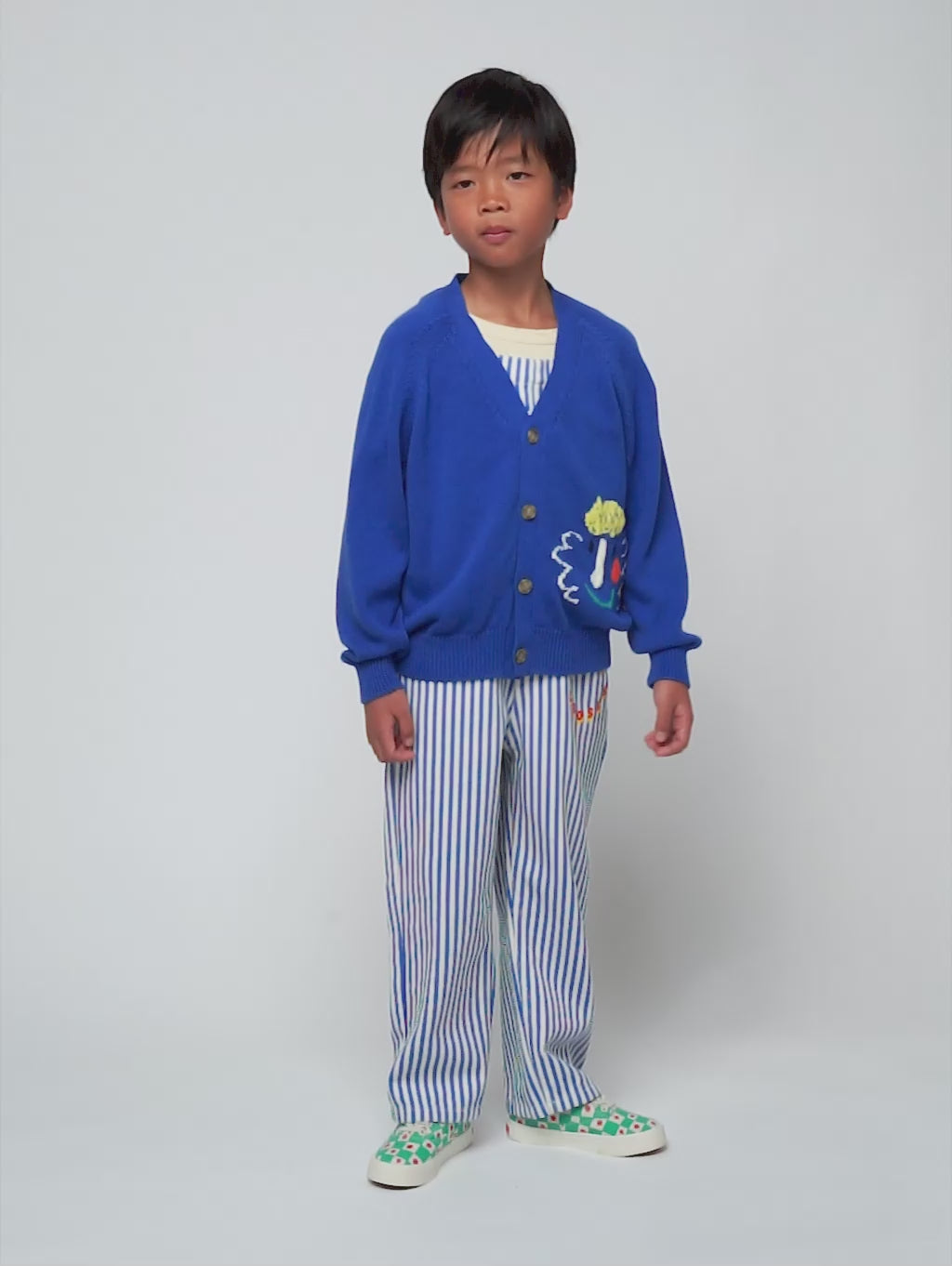 100% cotton blue cardigan. Designed with long sleeves, ribbed cuffs, embroidery, intarsia, fine knit, loose fit, ribbed bottom and ribbed crewneck. Made in Spain.