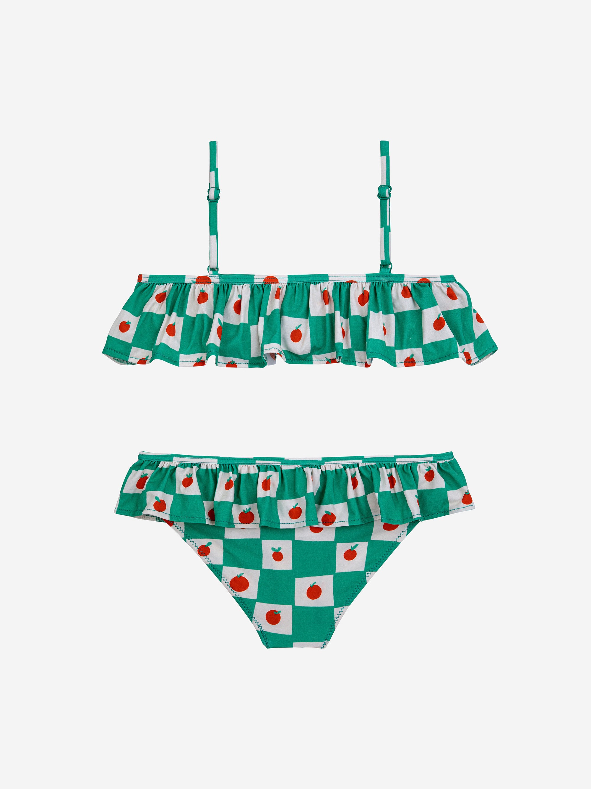 83% recycled polyamide, 17% elastane offwhite swimwear. Designed with adjustable straps, slim fit, regular, single handles and ruffled detailing. Made in Spain.