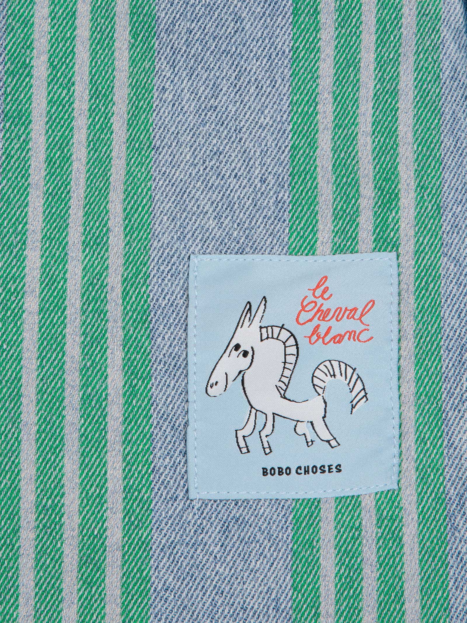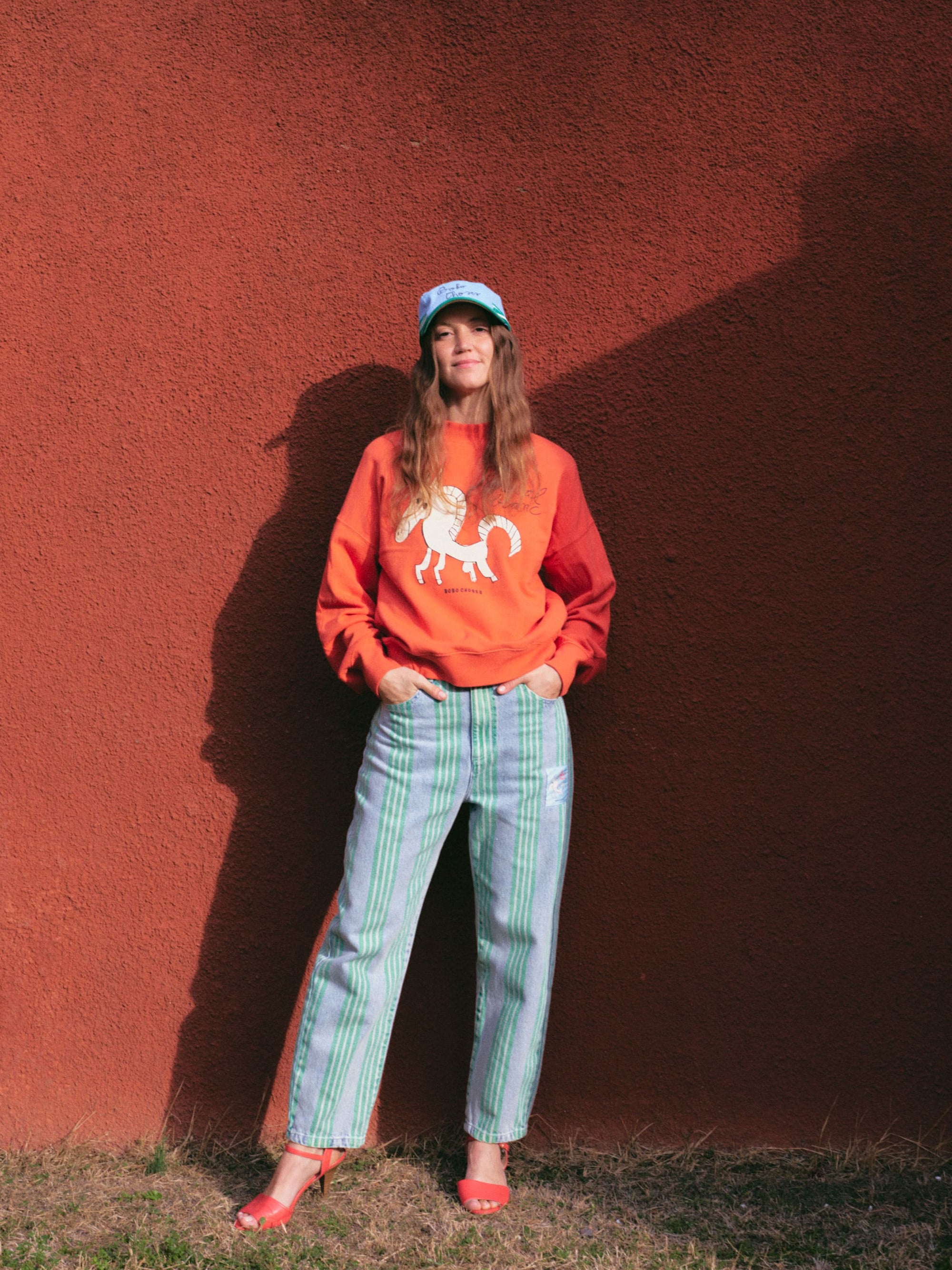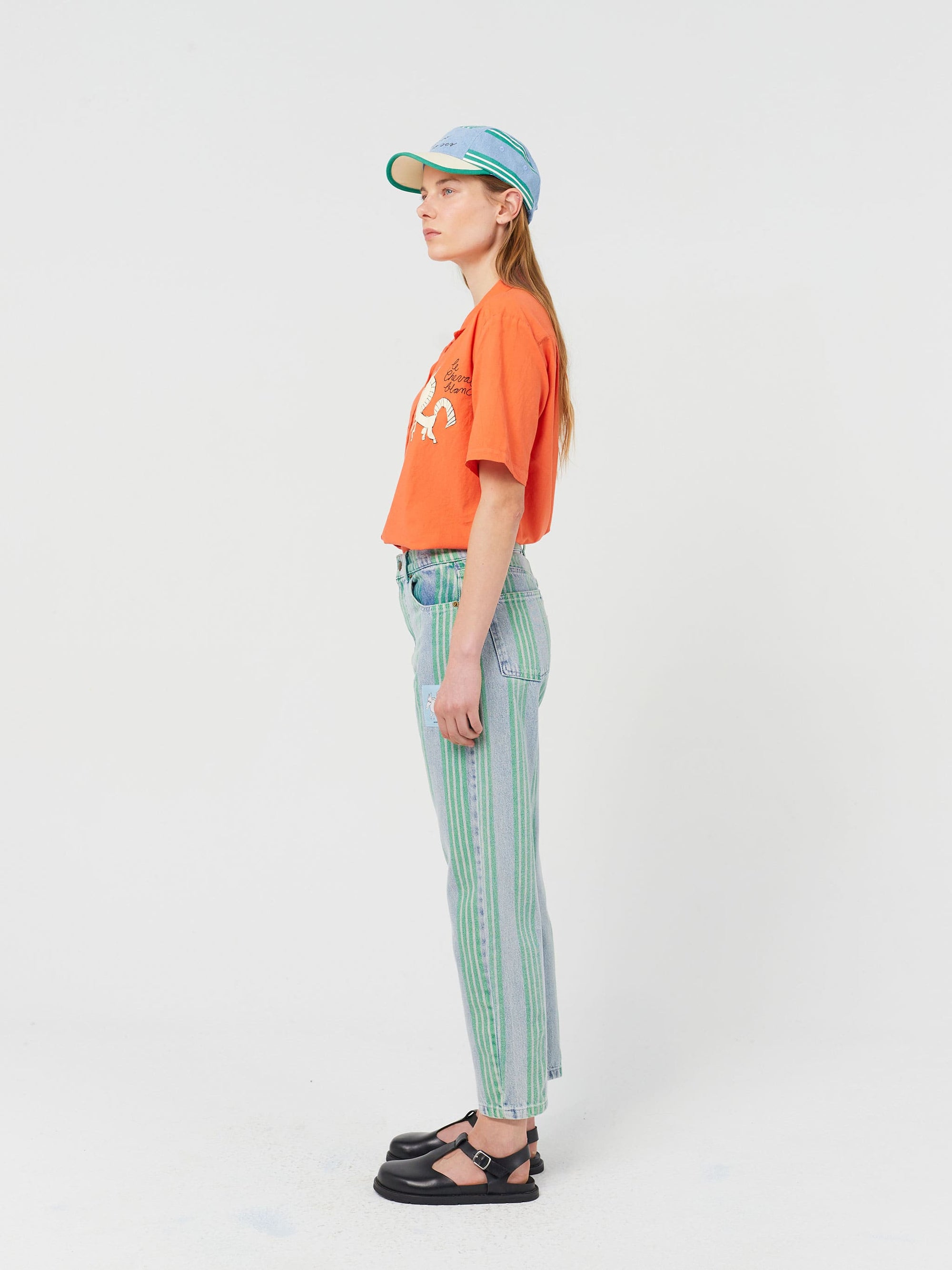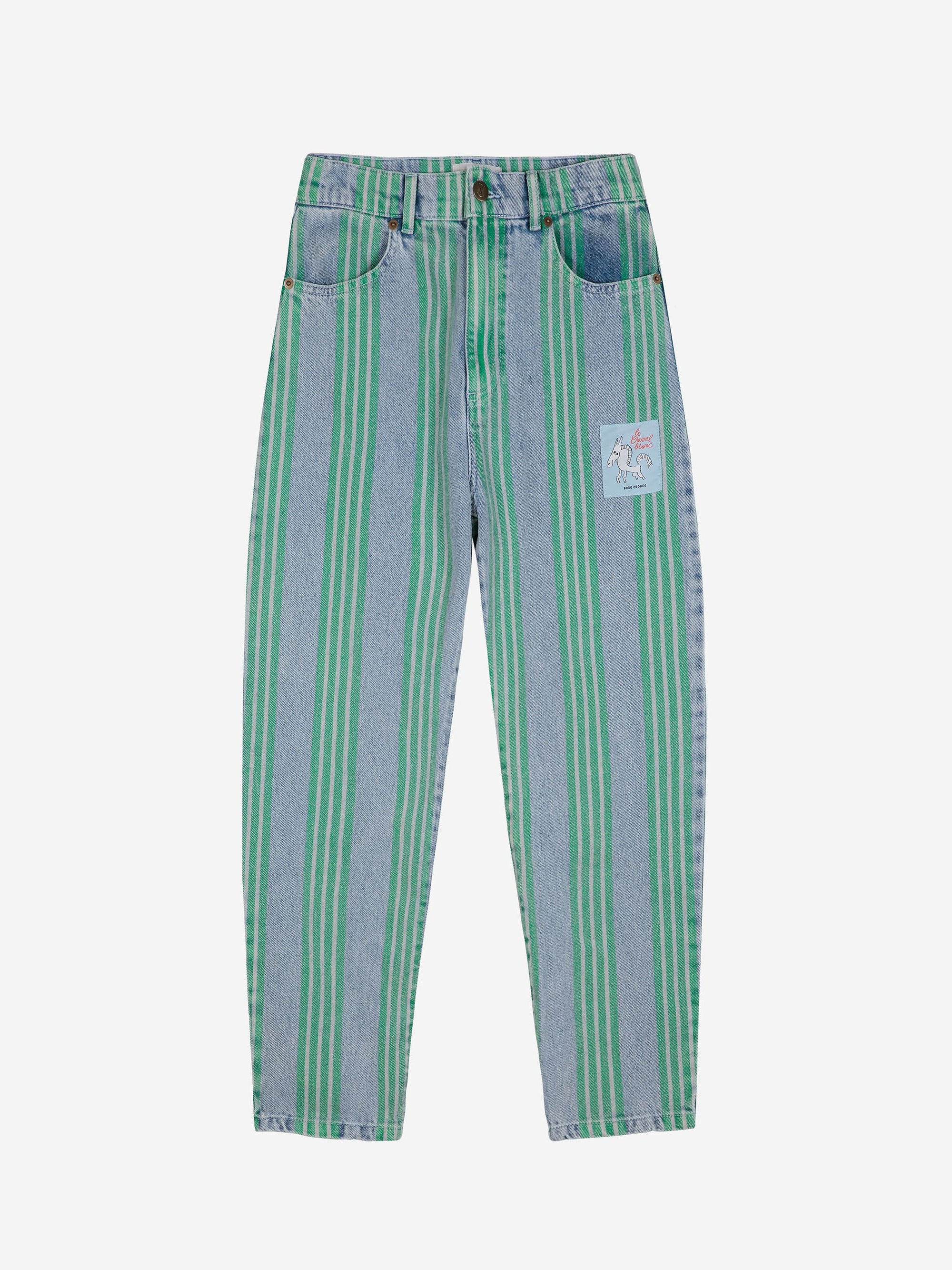 76% cotton, 24% recycled cotton light blue pants. Designed with cropped length and mid-weight fabric.