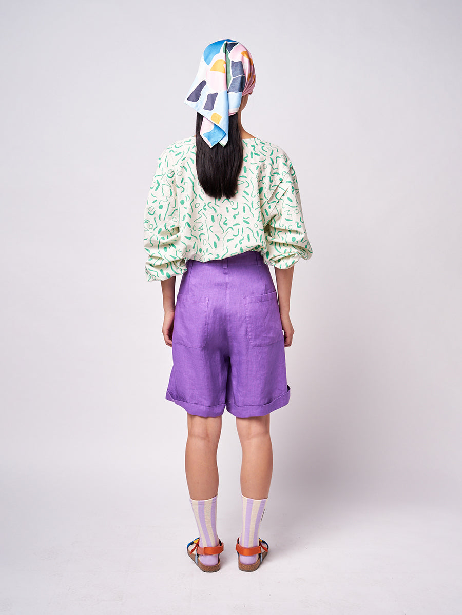 100% linen. shorts trousers. Designed with regular crotch, front button fastening, front zip fastening, slash pocket, single pleat, embroidery, high, beltloop and short. It has a wide leg fit. Made in Spain Measures: 45.00cm length. Model is 168 cm tall and is wearing s size. This item belongs to our SS22 adult collection, I’m a Poet. It celebrates poetry and its’ attitude of constant surprise and wonder. All things before the poet’s eyes have the impact of what is seen for the first time. To look for beauty and emotion in the ordinary, the beautiful, and the not-so-beautiful is as much an act of rebellion as a vital necessity.