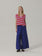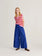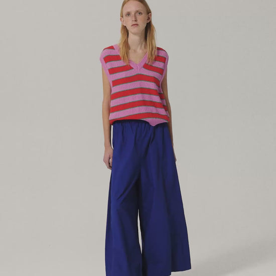 Blue pants. Designed for a relaxed fit, elasticated at the waist for a flexible fit, midi length, flared cut / evasé, non stretchy fabric and designed with pockets. Fits true to size, take your normal size. Made in Spain.