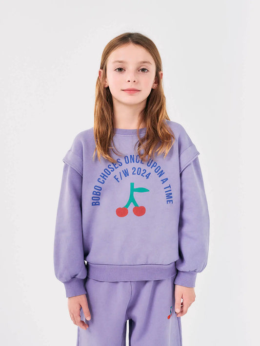 Share fun adventures with children. Our lavender jogging pants, embroidered with juicy red cherries, add fun to boys' and girls' outfits. Designed for comfort, they provide ample space to explore every corner and stimulate curiosity as they grow, with colours, textures, and patterns that match their daily escapades.