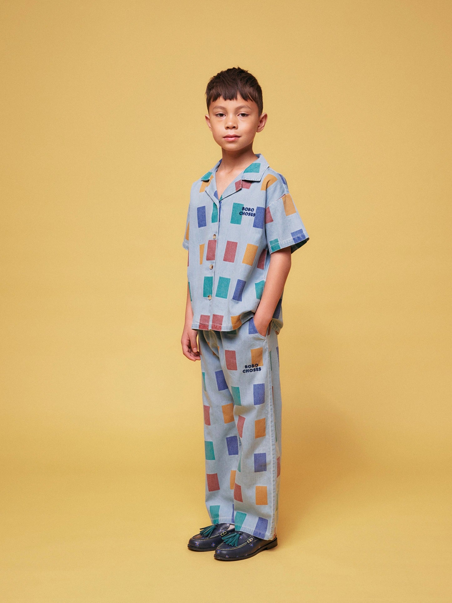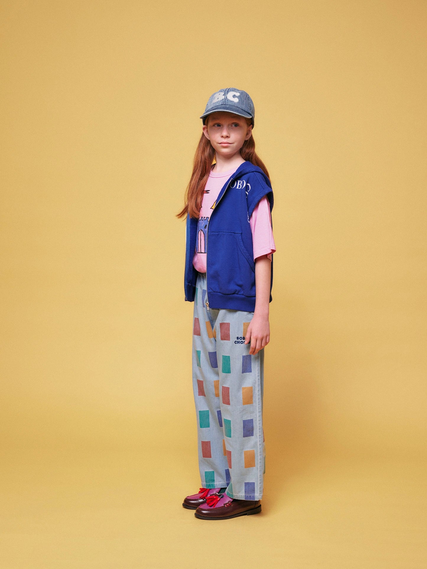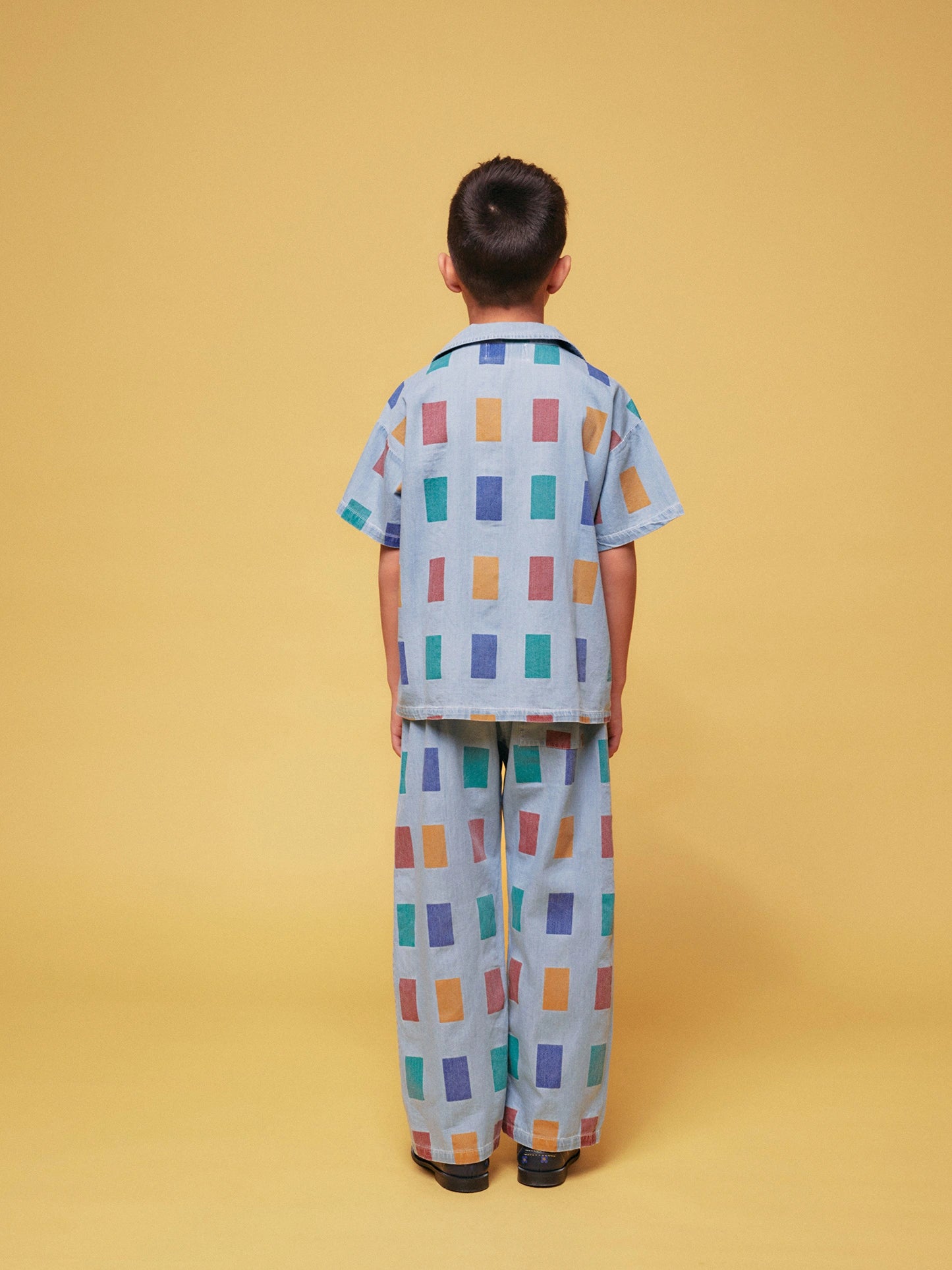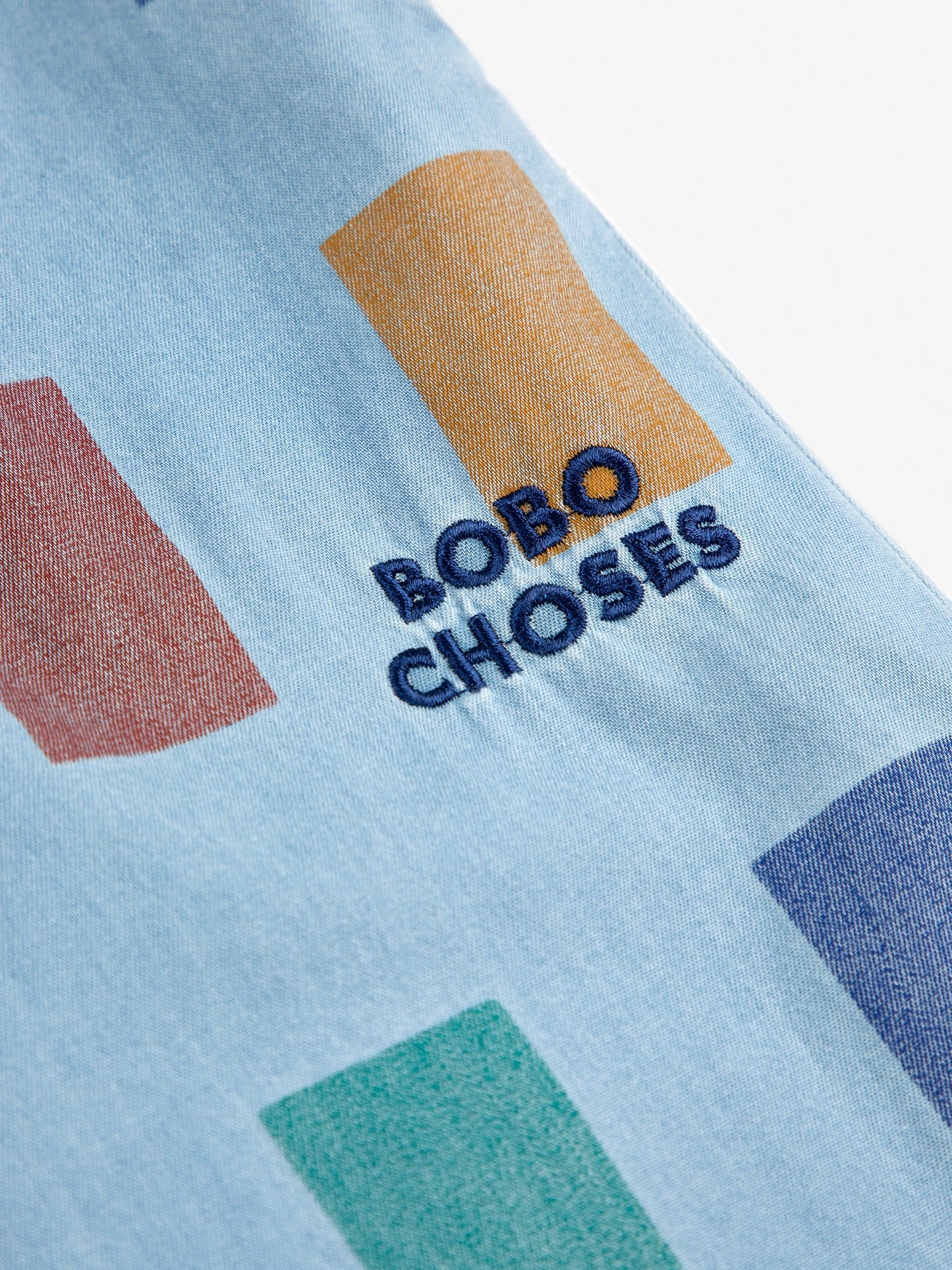 Join their games and adventures! Our light blue baggy pants are crafted to withstand every step they take. Life is full of surprises, and our designs aim to ignite curiosity and enthusiasm in kids. The playful block print in red, blue, green, and yellow adds an extra layer of joy, making their outfits even more fun.