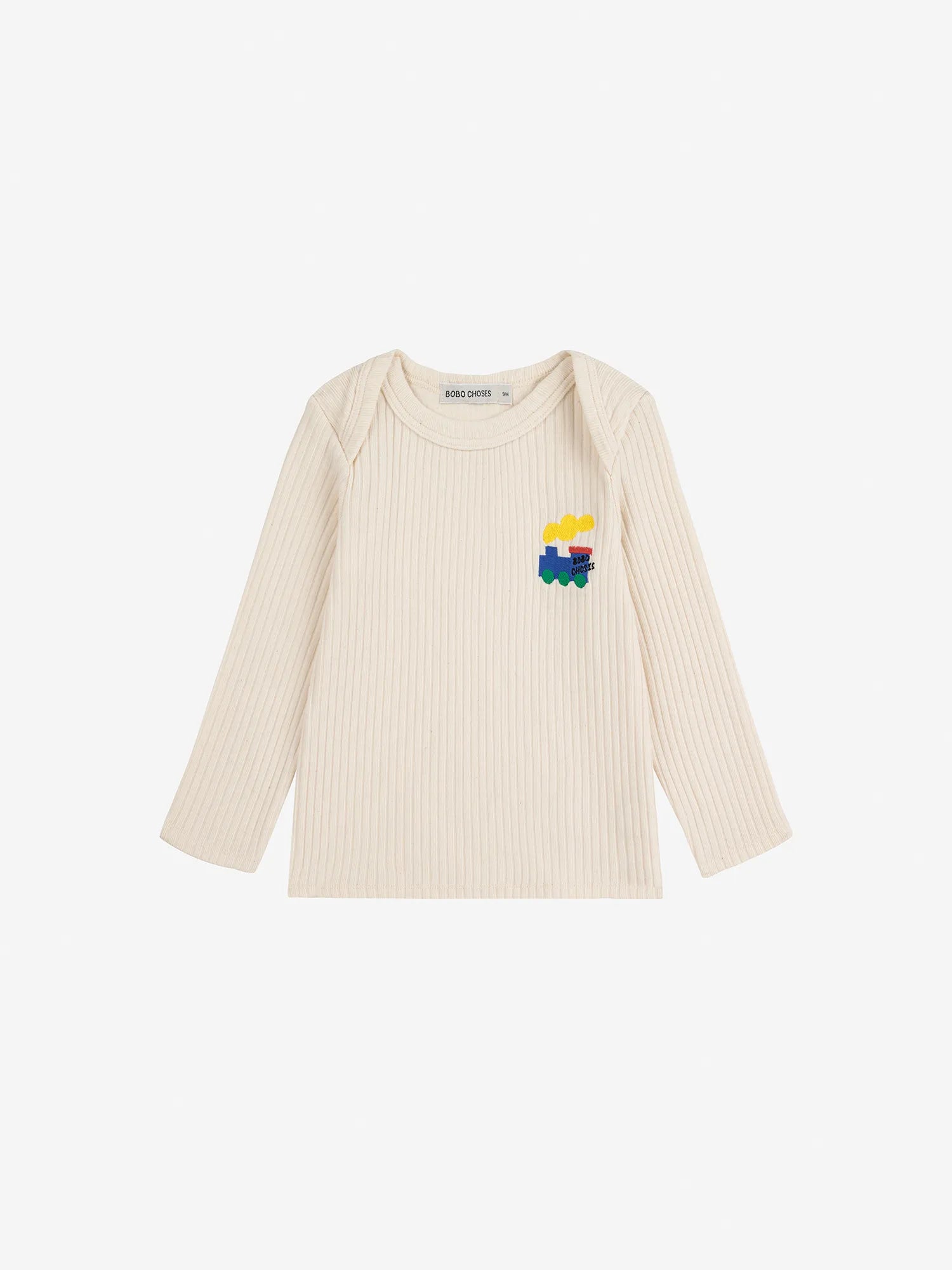 White t-shirt. Designed with long sleeves, embroidery, slim fit and envelope neck. Made in Spain.