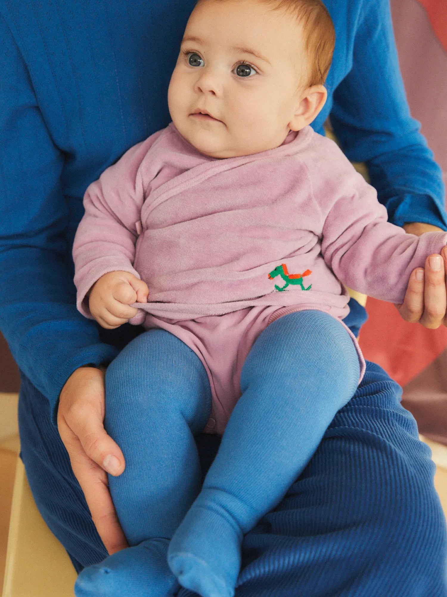 Lavender t-shirt. Designed with v-neck, long sleeves, raglan sleeves, crotch snap fastening, embroidery, slim fit, cord fastening, velvet and off-centre front button fastening. Made in Spain.