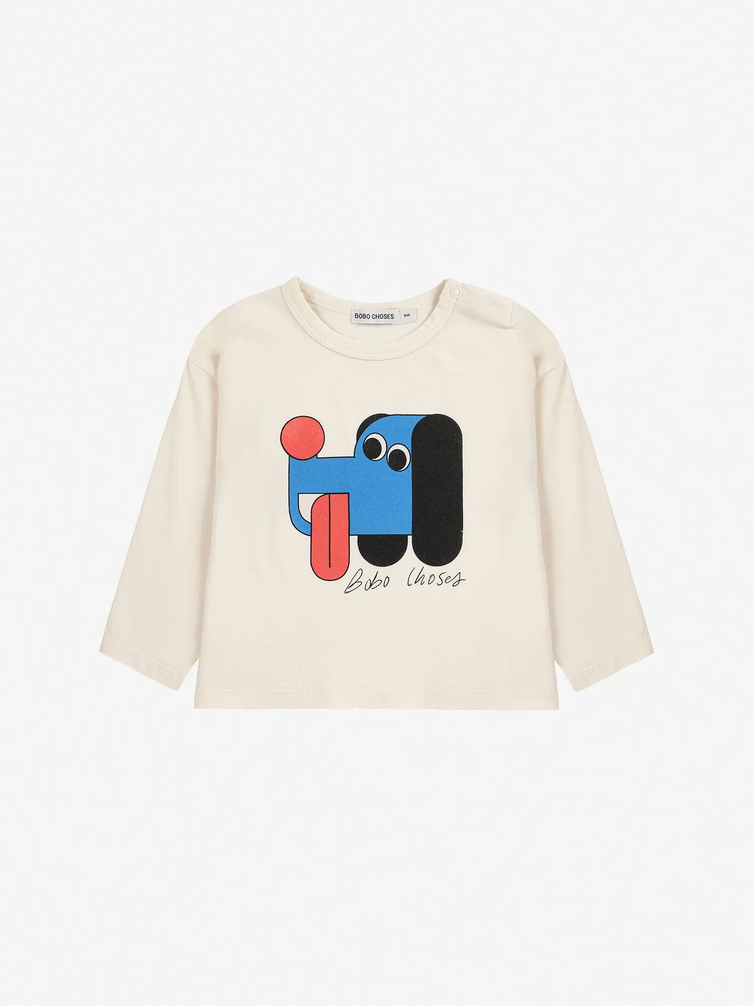 White t-shirt. Designed with long sleeves, dropped shoulder, shoulder snap fastening, loose fit and round neck. Made in Portugal.