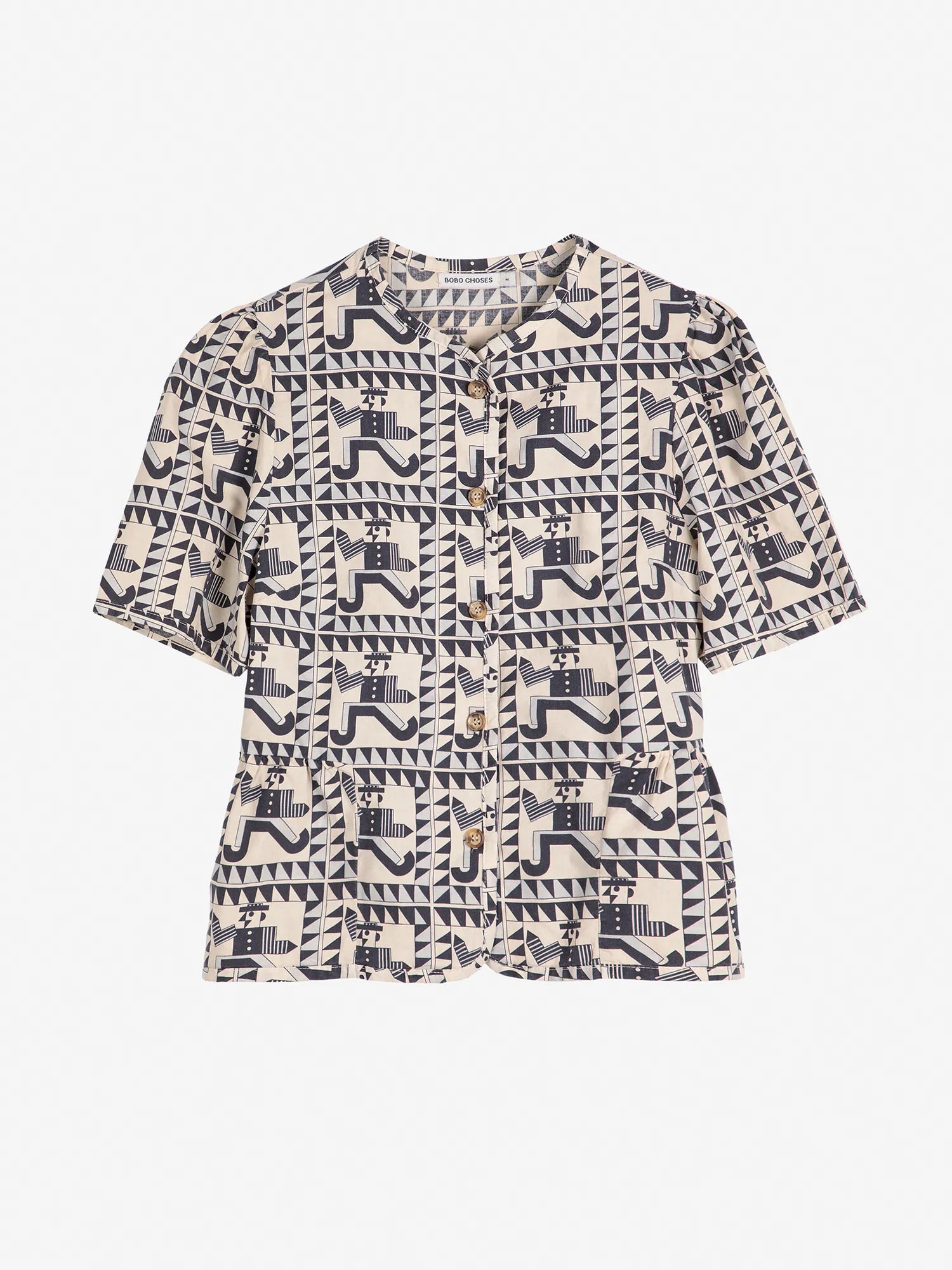 Beige blouse. Designed with non stretchy fabric. Fits true to size, take your normal size. Made in Spain.
