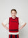 100% Organic Cotton red jumper. Designed with sleeveless, embroidery, fine knit, loose fit, ribbed bottom and wide round neck. Made in Spain.