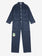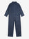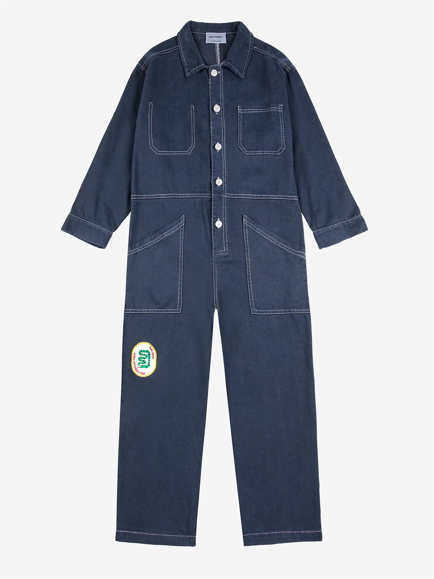 50% Cotton, 50% Lyocell midnight blue overall. Designed with flat collar, long sleeves, front button fastening, patched chest pocket, loose fit, long length, patch pocket and contrast topstitching. Made in Spain.