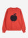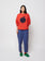 The red sweatshirt, made from a blend of GOTS-certified organic cotton and recycled cotton, features a midnight blue sun print on the front. Its relaxed fit and dropped shoulder seams, it offers ample space for layering. The mid-weight fabric offers movement, making this timeless piece easy to pair with other clothes.