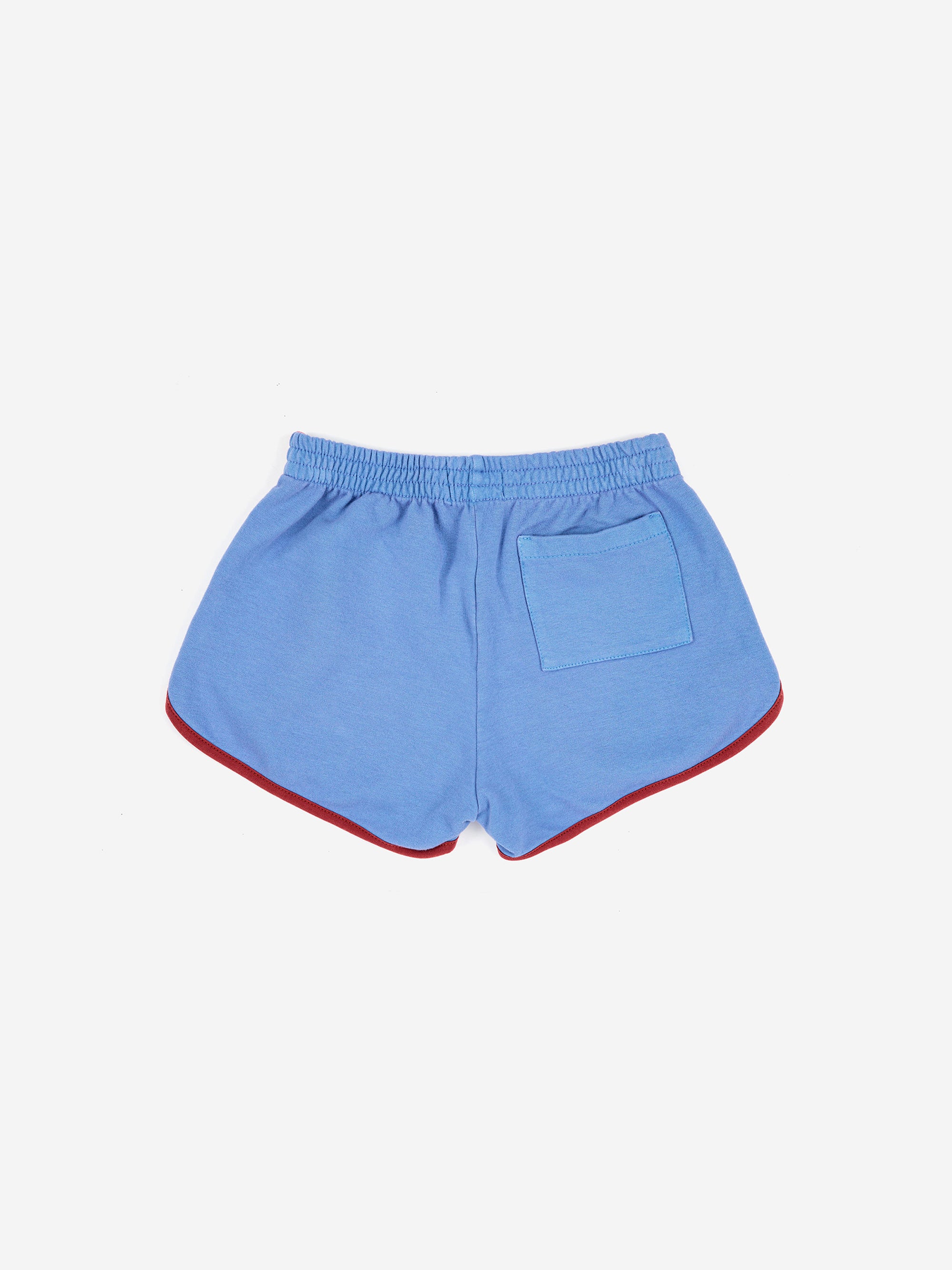 94% organic cotton 6% elastane blue shorts. Designed with regular crotch, elasticated waistband, low and short. It has a slim fit. Made in Spain
