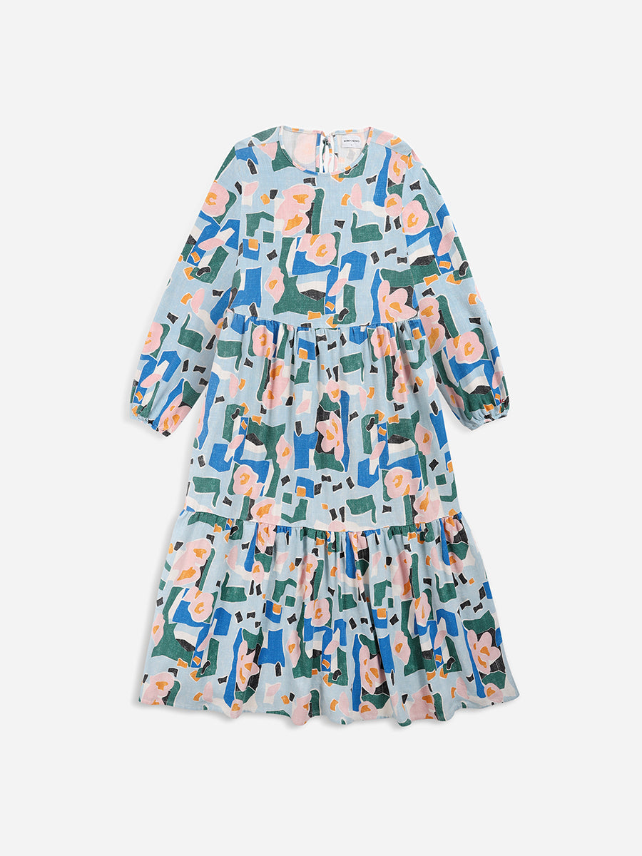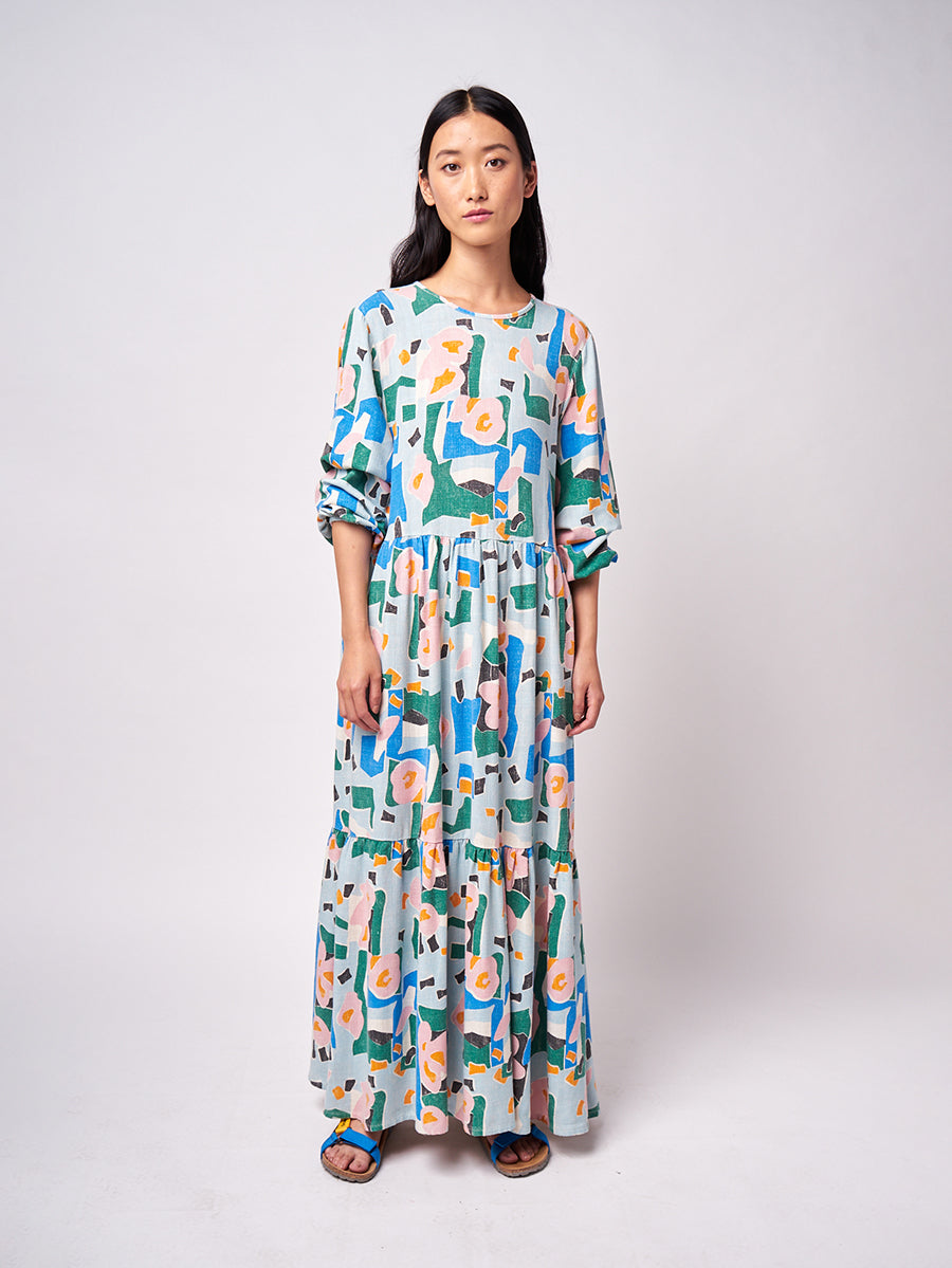 Floral print long flared dress