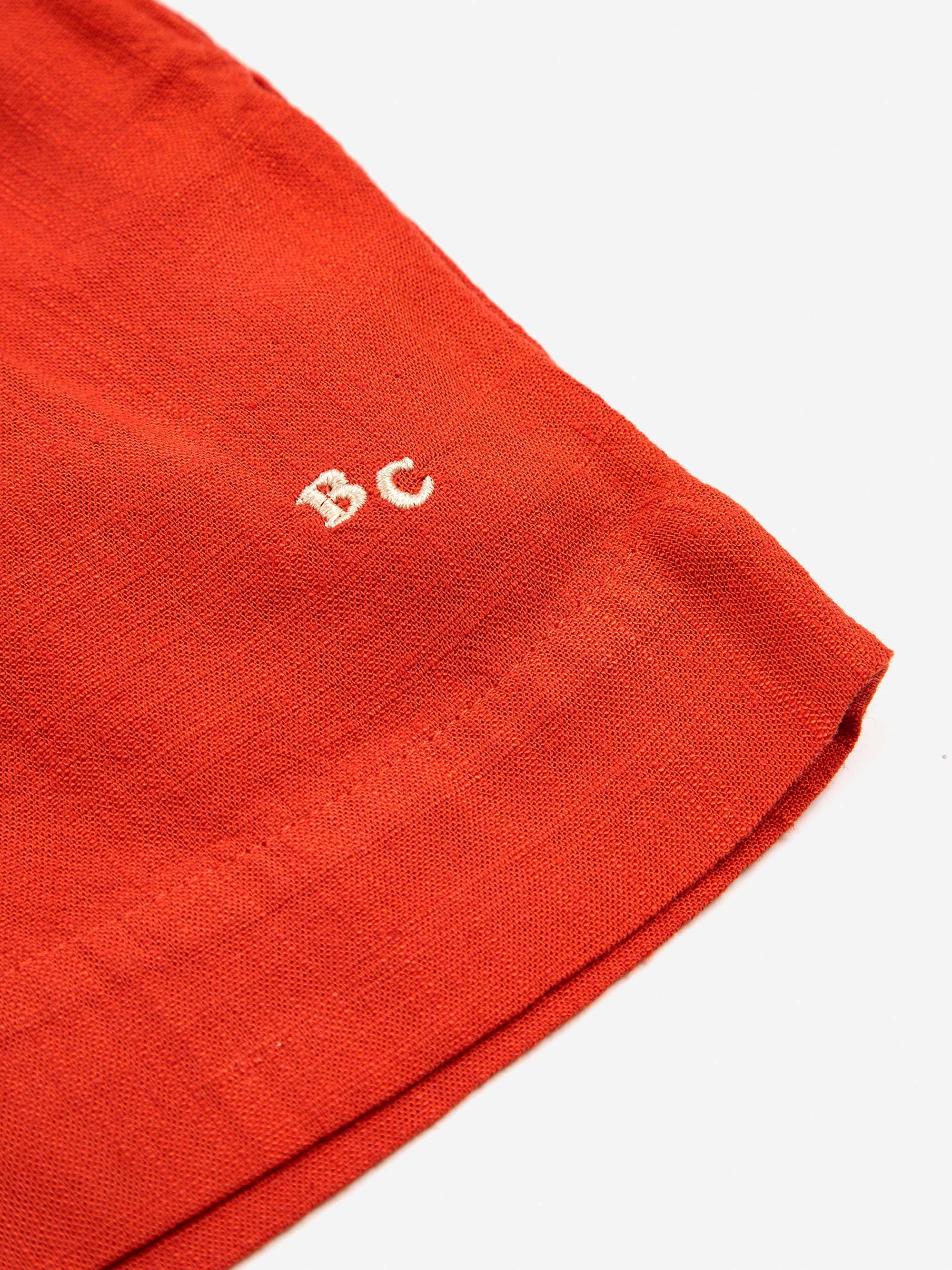 80% viscose 20% linen red bermuda shorts. Designed with adjustable waistband, elasticated waistband and side pocket. Made in Spain