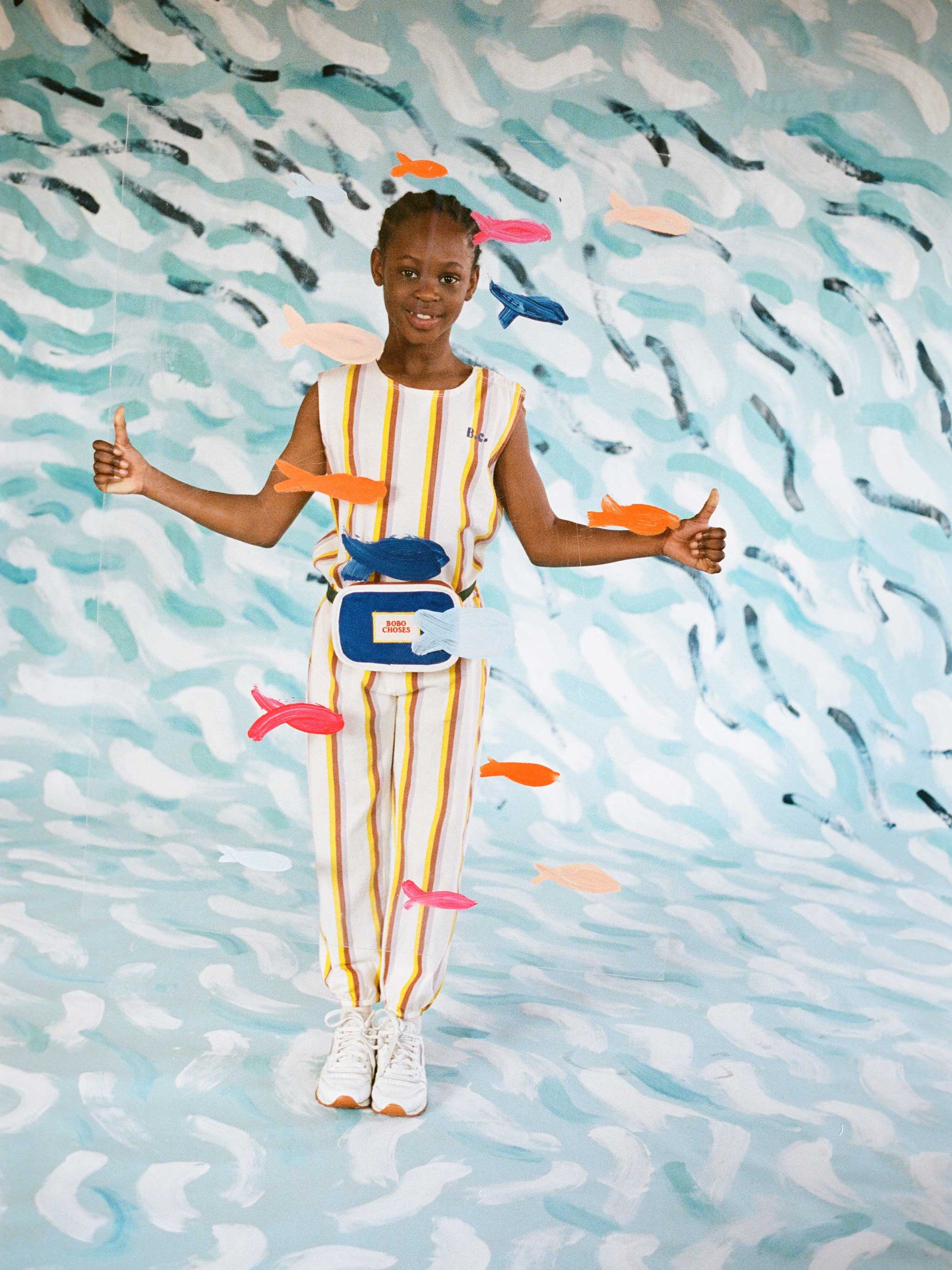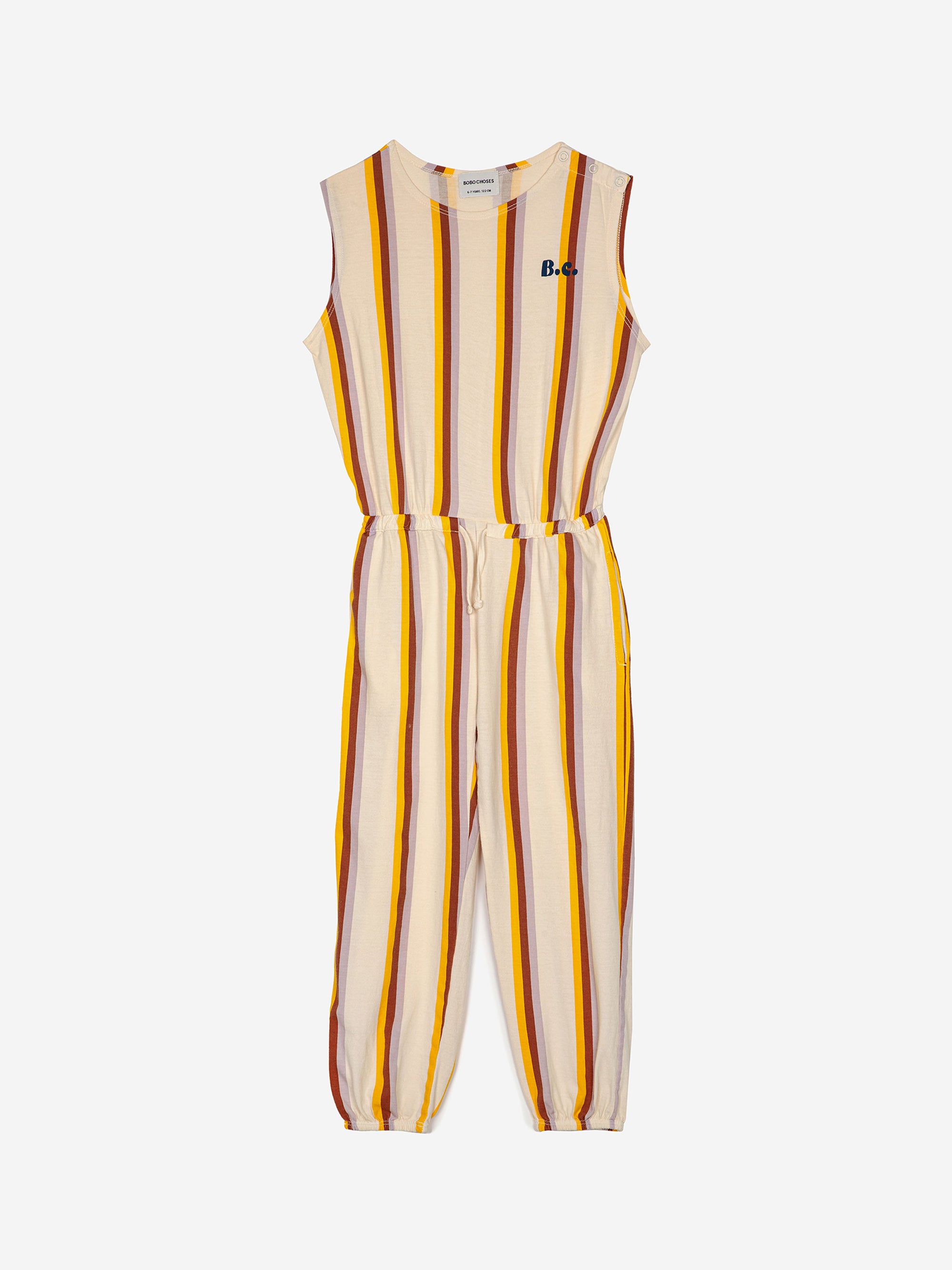 100% organic cotton offwhite sleeveless overall. Designed with sleeveless, shoulder snap fastening, elasticated bottom, elasticated waistband and ankle length. It has a loose fit. Made in Spain